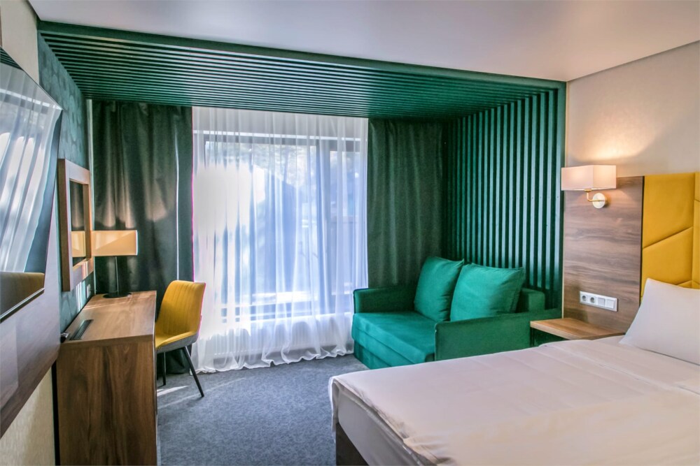В концертно-развлекательном зале открыт ресторан современной кавказской кухни с континентальными завтраками.