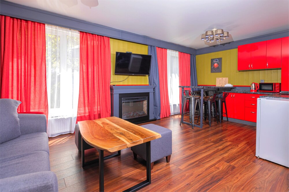 Комфортабельные дома созданы по принципу «из дома в дом» - оборудованы всей необходимой техникой и кухонной утварью. На территории есть детская и спортивная площадки, бесплатный Wi-Fi.