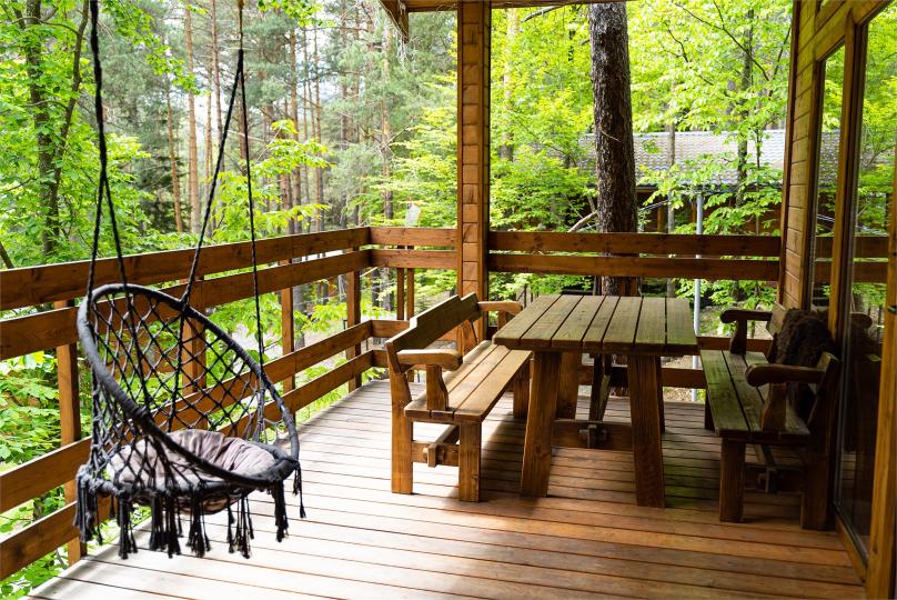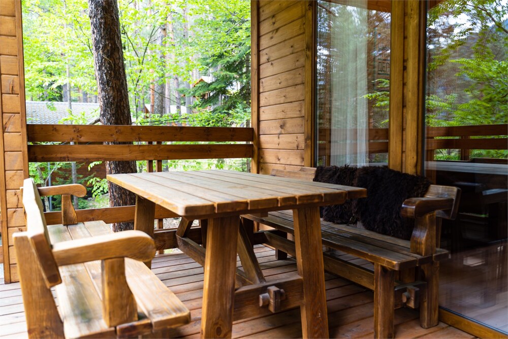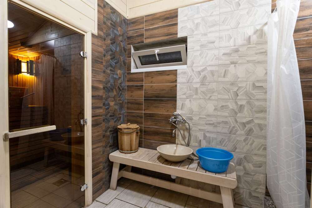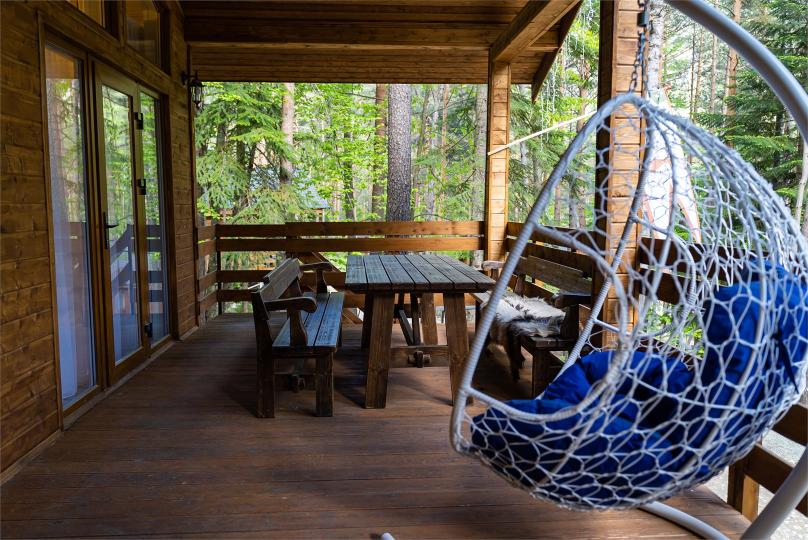 - баня до 8 человек, в бане есть чайник, травяные сборы, мёд, веники, специальное подвешенное большое ведро для обливания студёной водой, комната отдыха с телевизором комфортными скамьями и большим столом, веранда;