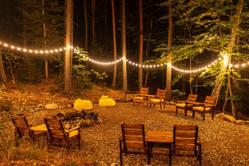 - костровое место где можно собраться большой компанией, разжечь большой костёр, петь песни под караоке, и в мангале комфортно жарить мясо или овощи;