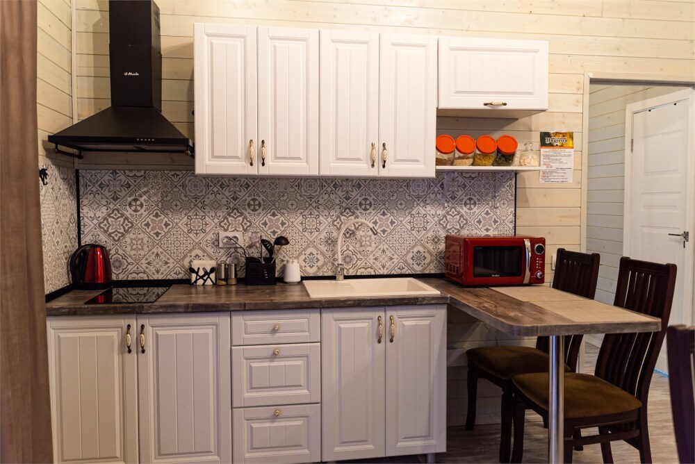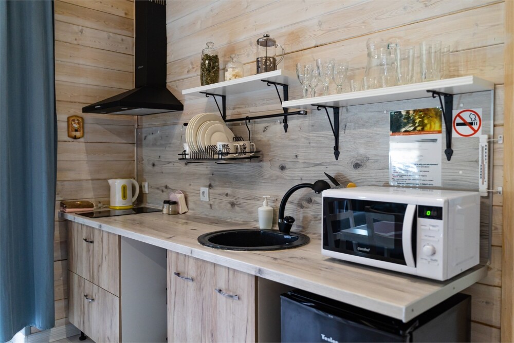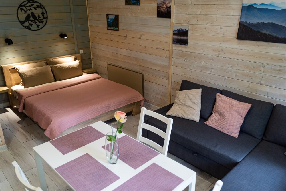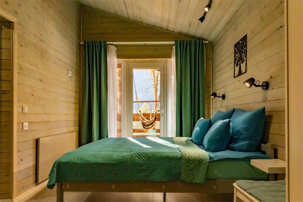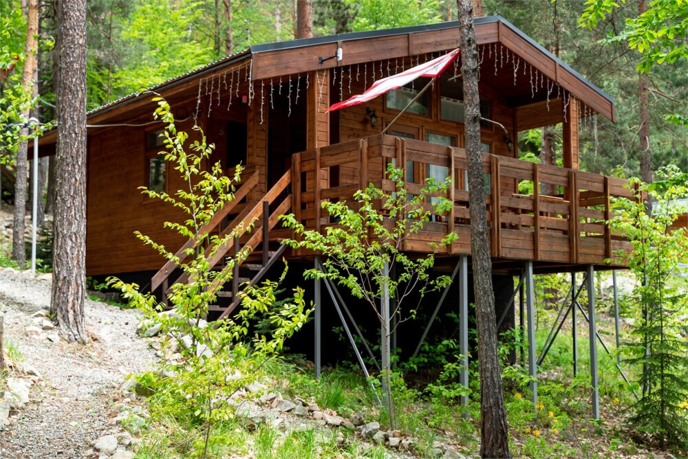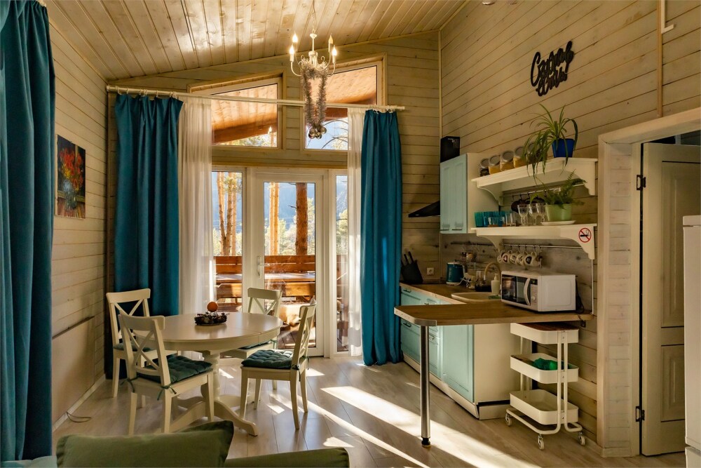 Для размещения гостям предлагают 4-х и 6-местные домики шале в Архызе с террасами, в сосновом лесу с комфортными тропинками, и великолепным видом на противоположные склоны гор. Комфортное расстояние между домиками в лесу не создаёт неудобств с соседями. Рядом протекает река Большой Зеленчук. Шале оснащены двуспальными кроватями, собственными душевыми комнатами, набором чистого постельного белья и полотенец. Интерьер украшен предметами быта, декоративной зеленью и картинами. В каждом домике шале есть всё необходимое для комфортного отдыха: стабильный Wi-Fi, спутниковое телевидение, кухонная зона со всей необходимой техникой и инвентарем, душевая комната с тропическим душем. Кухонные зоны полностью оборудованы необходимым количеством техники для приготовления еды, холодильниками, индукционной плитой и свч, а также обеденными столами, приборами и посудой. Рядом с каждым домиком есть собственный мангал с навесом.
