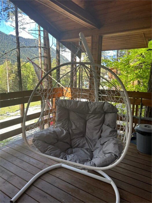 Классическое горное шале с большой террасой, одной спальней и большой кухней гостиной, расположенное на склоне в хвойном лесу. С крытой террасы в 24 м2 открывается невероятный вид на горы. Интернет - оптоволокно (40-50 Мбит). В доме: обогреватель, теплый пол, тапочки.