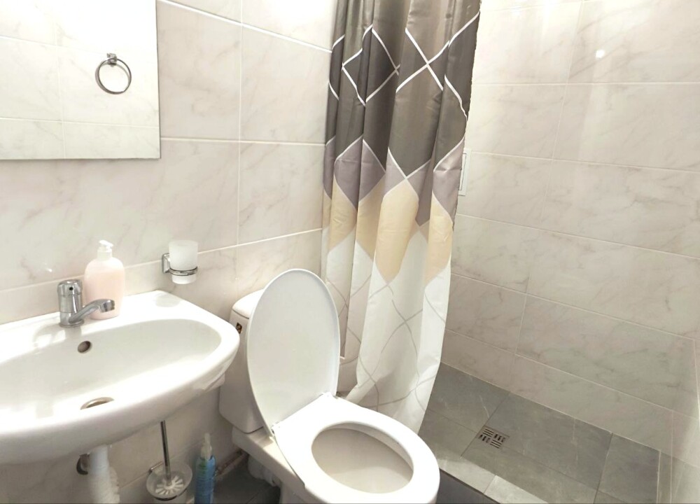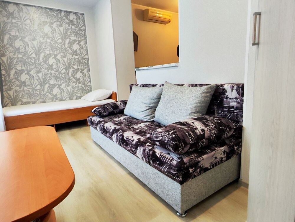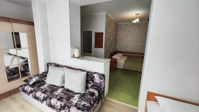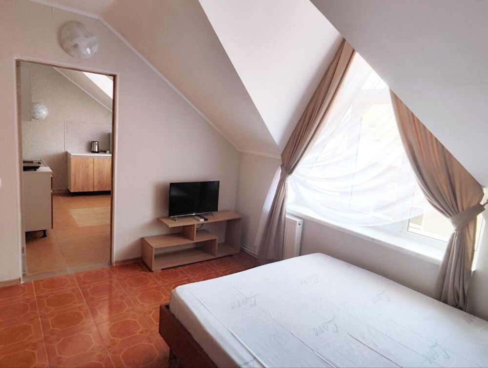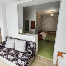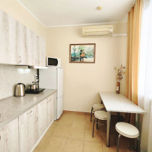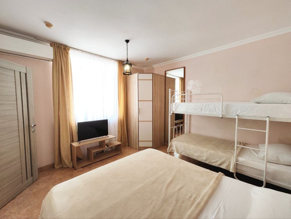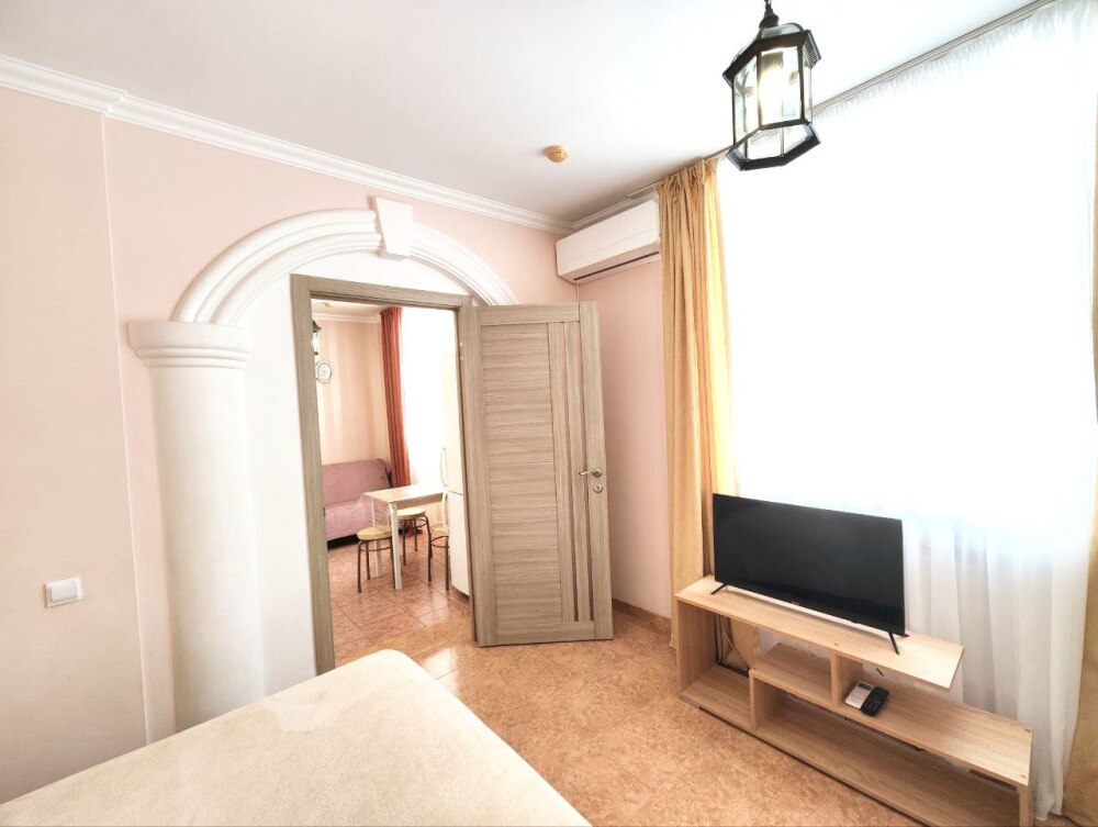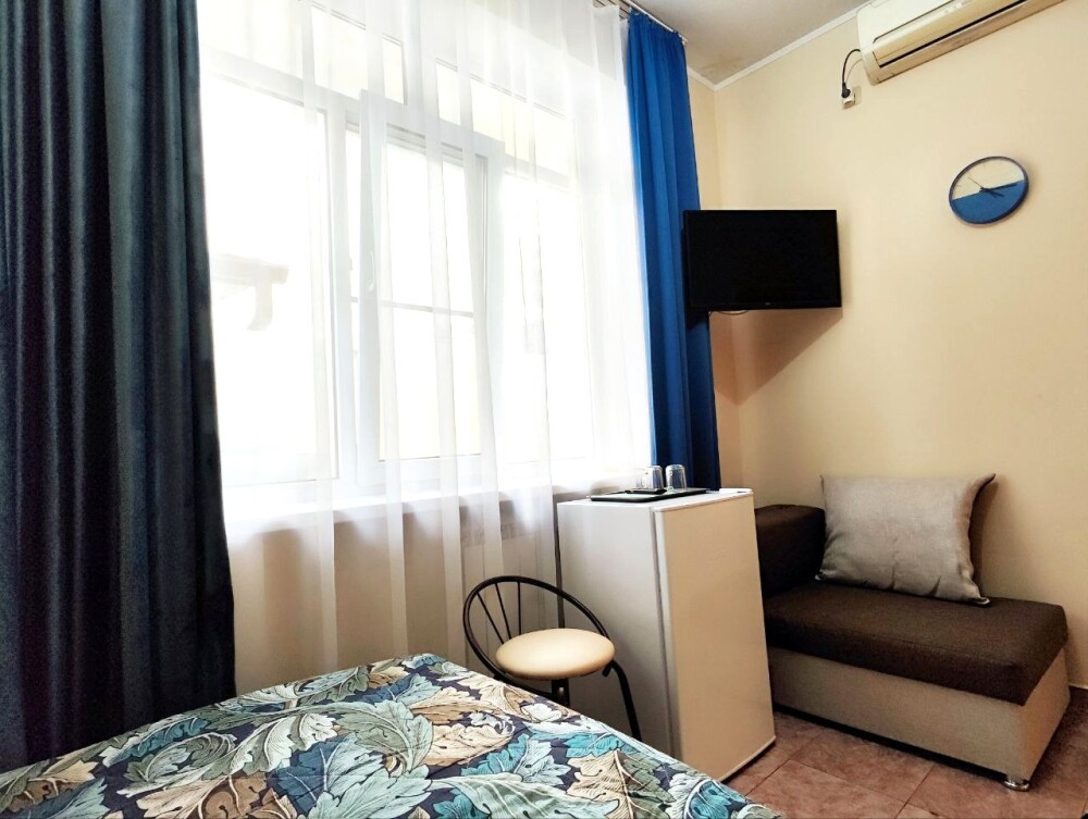 Двуспальная кровать 1.60, кресло-кровать, телевизор, холодильник, кондиционер, индивидуальный санузел.