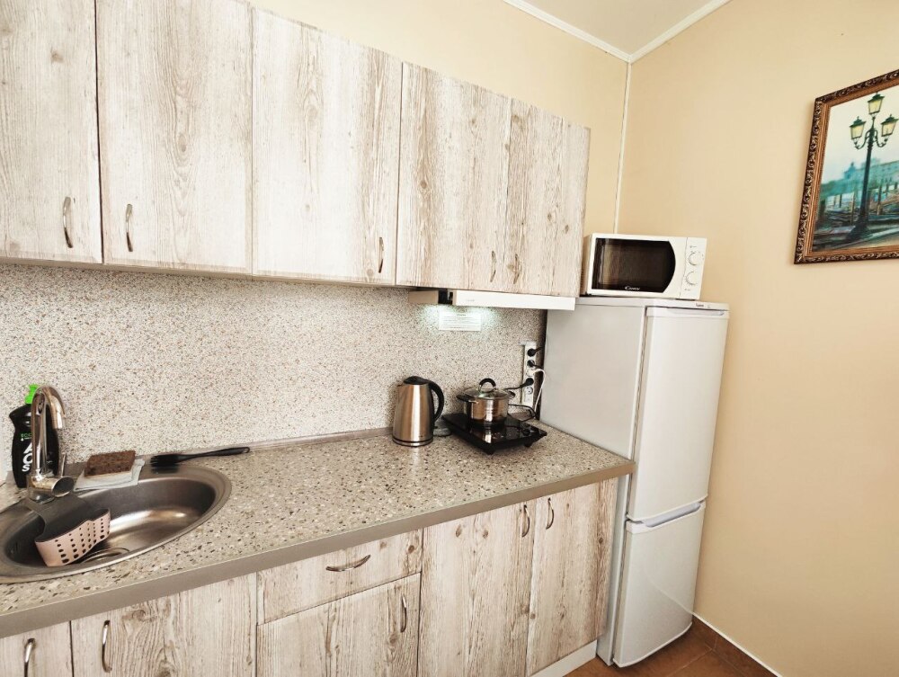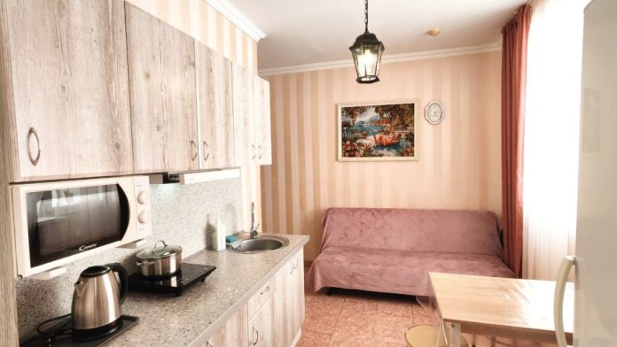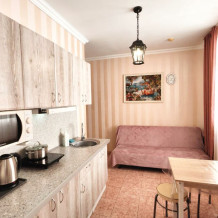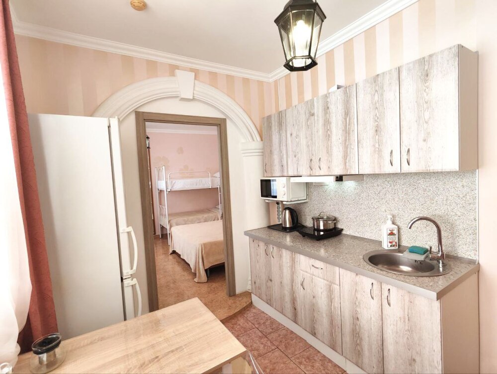 Готовить гости могут на общей кухне, где для этого есть вся необходимая посуда и техника. На каждом этаже имеется чайник, микроволновка, гладильная доска, утюг и сушилка для белья. На красивой территории много растений и цветов, мангал, места для отдыха, столы и стульями для приема пищи. Осуществляется влажная уборка, смена полотенец и постельного белья по графику. Рядом работает круглосуточная платная парковка.
