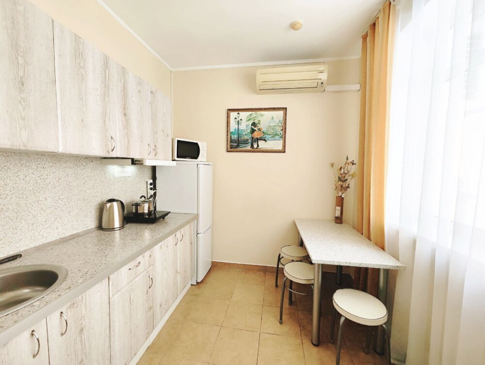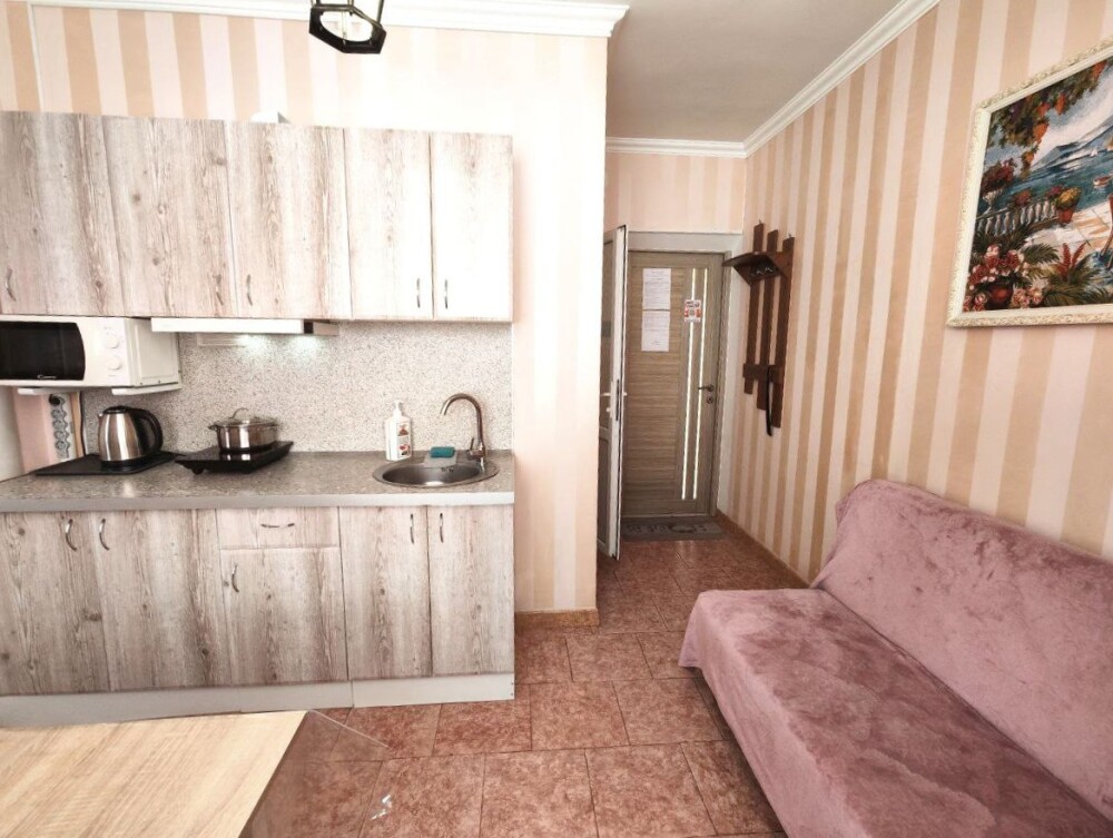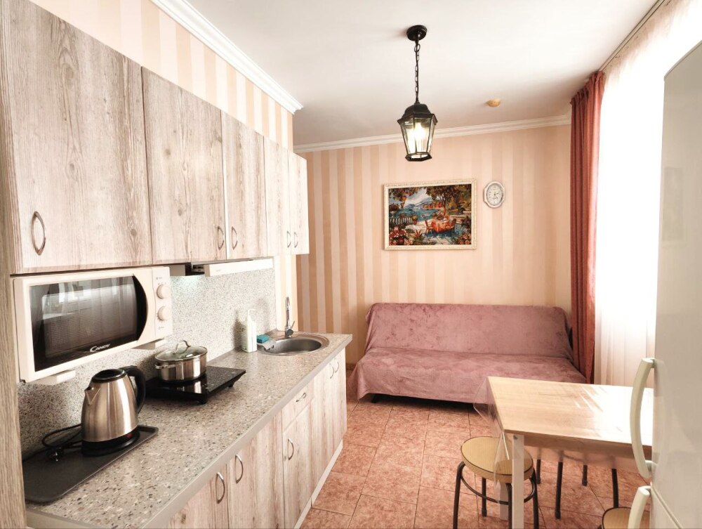 - 400 м до моря по прямой через торговые ряды и кафе (проход через тоннель) на пляж Чкаловкий и Фрегат;