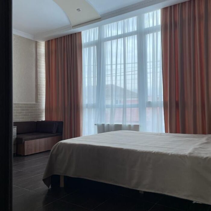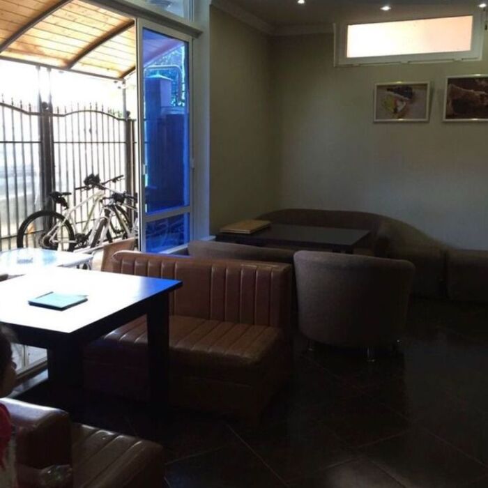 На территории нашего отеля, для удобства наших постояльцев, мы оборудовали места для отдыха наборами летней мебели, а наш уютный дворик, не только порадует Вас, но и спасет от летнего зноя. В номерах и на территории работает безлимитный Wi-Fi интернет. Для любителей готовить самостоятельно - есть общая кухня и кухни в двухкомнатной квартире со всем необходимым для самостоятельного приготовления пищи. Туристам прибывшим к нам личном авто всегда найдется место на охраняемой парковке расположенной в метрах от нашего отеля.