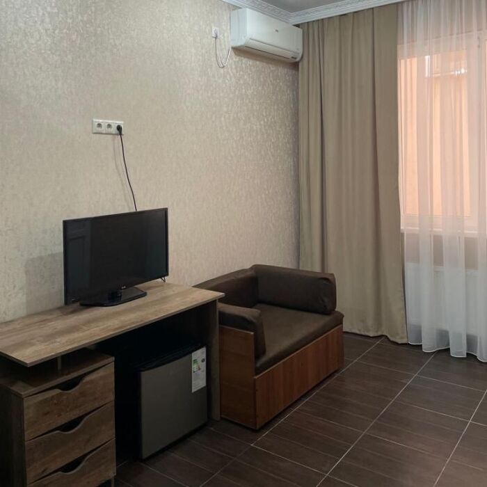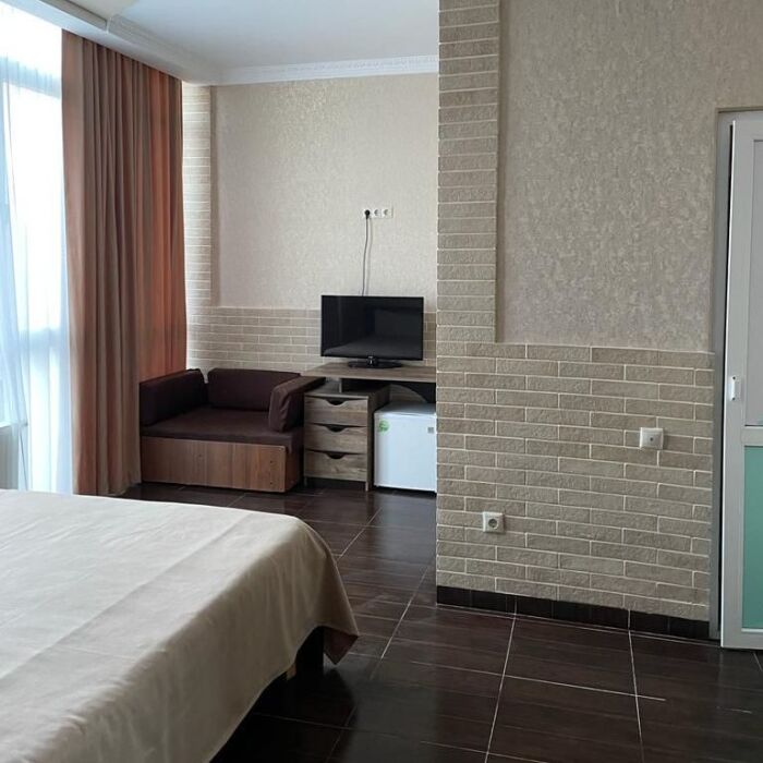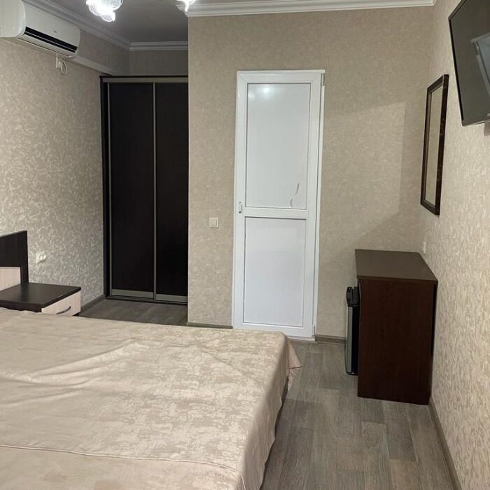 Для размещения отдыхающих наш отель всегда рад предложить Вам по домашнему уютные, просторные однокомнатные двух-, и трехместные номера со всеми удобствами категории «Комфорт», а также двухкомнатную квартиру ср всеми удобствами. В квартире и во всех номерах есть все необходимое для комфортного проживания: современная мебель, сплит-система, Wi-Fi интернет, телевизор, цифровое ТВ, холодильник, туалет, душ. Вода холодная, горячая - круглосуточно.