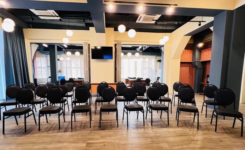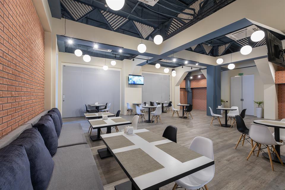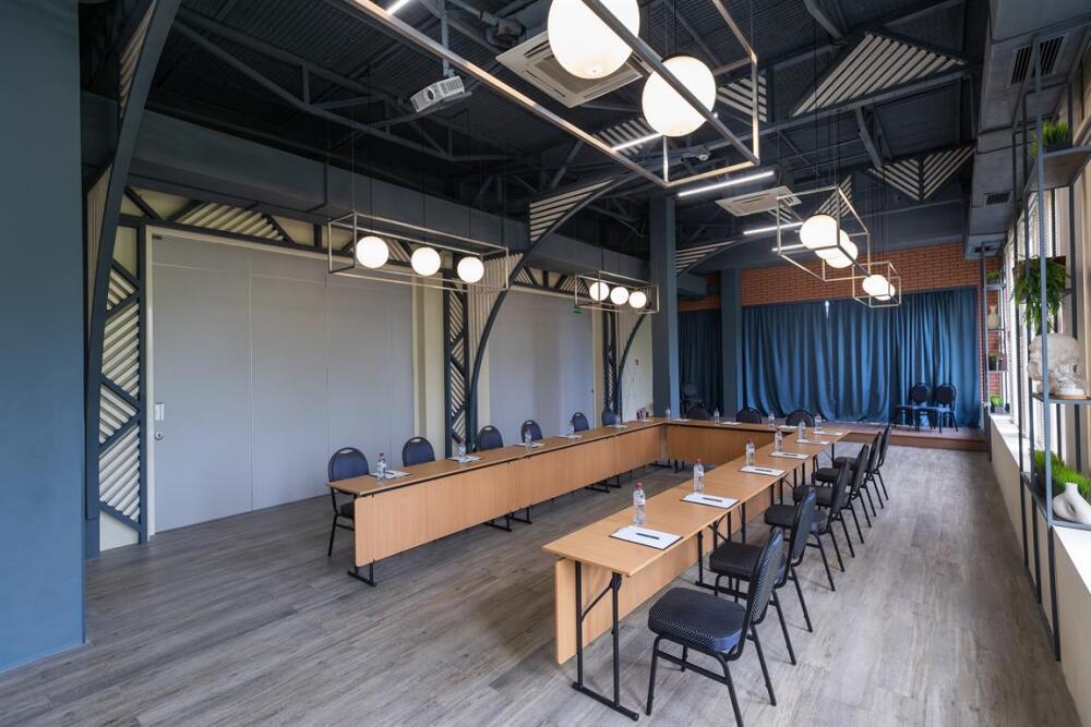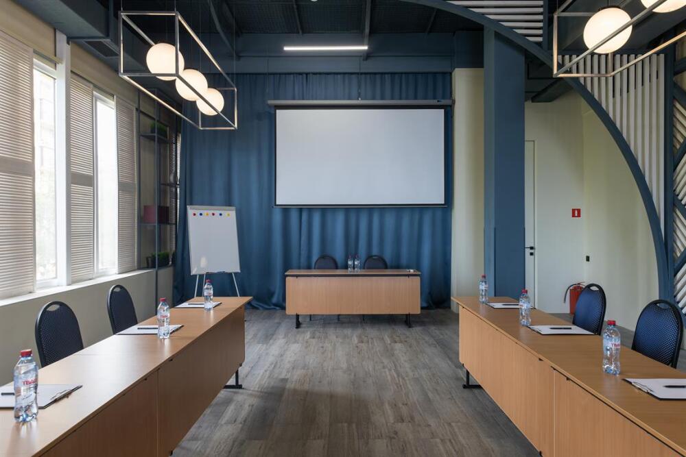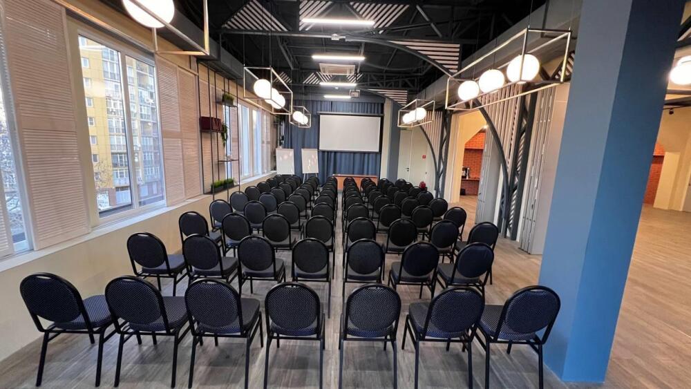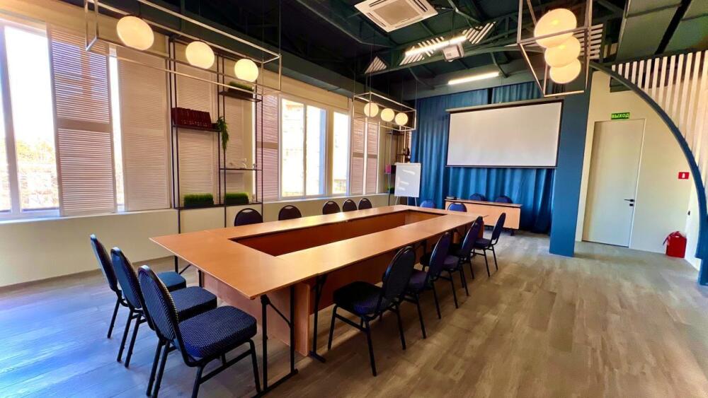 Конференц-зал вместимостью до 100 человек, имеет органично организованное пространство, удобные места для размещения участников. К Вашим услугам современное оборудование (подвесной проектор, экран, звуковое оборудование, беспроводной интернет). Удобный зал для проведения семинаров и конференций, совещаний, тренингов и презентаций.