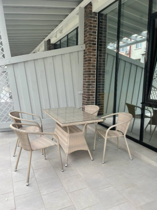 В номере: ванная комната (душ, туалет, раковина, стиральная машинка, фен, халаты, тапочки), телевизор, кондиционер, двуспальная кровать, тумбы, шкаф-купе, двуспальный раскладной диван, кухня (холодильник, посудомоечная машина, микроволновая печь, чайник, посуда, плита), огромная терраса с уличной мебелью 35 кв.м.