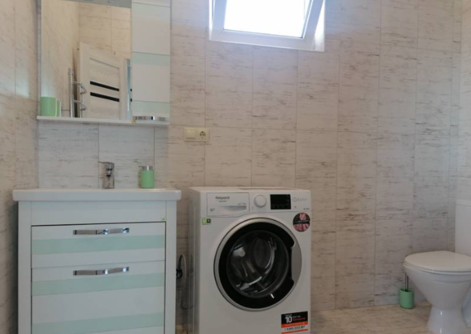 В апартаментах отдельная спальня и просторная гостиная, удобная планировка для комфортного отдыха. Имеется 4 спальных места: 2 в спальне и 2 на удобном раскладывающемся диване. Отдельно стоит отметить наличие кухни с необходимым инвентарем и оборудованием для приготовления блюд, что очень удобно. В апартаментах санузел с душем и стиральной машинкой.