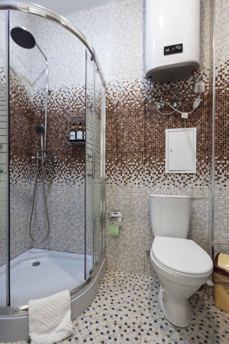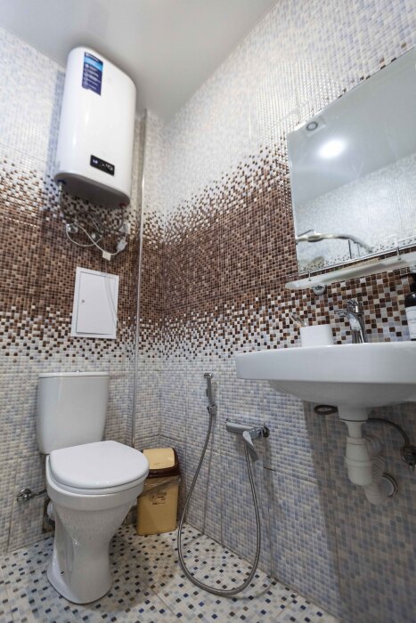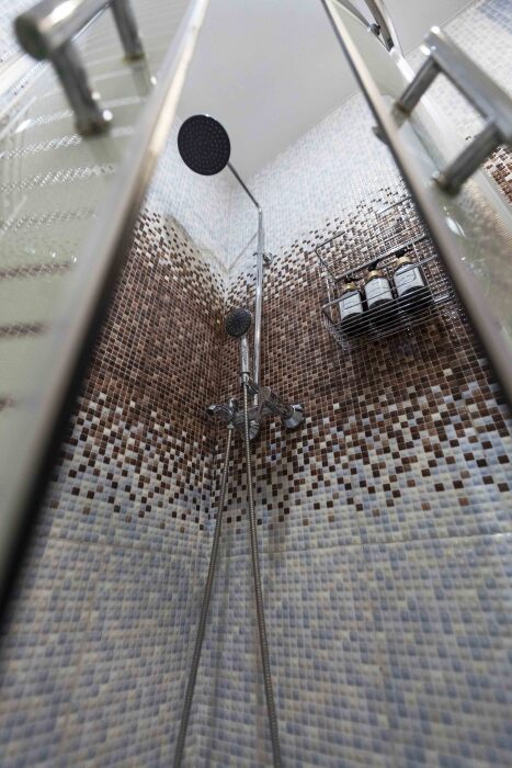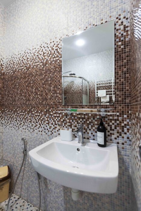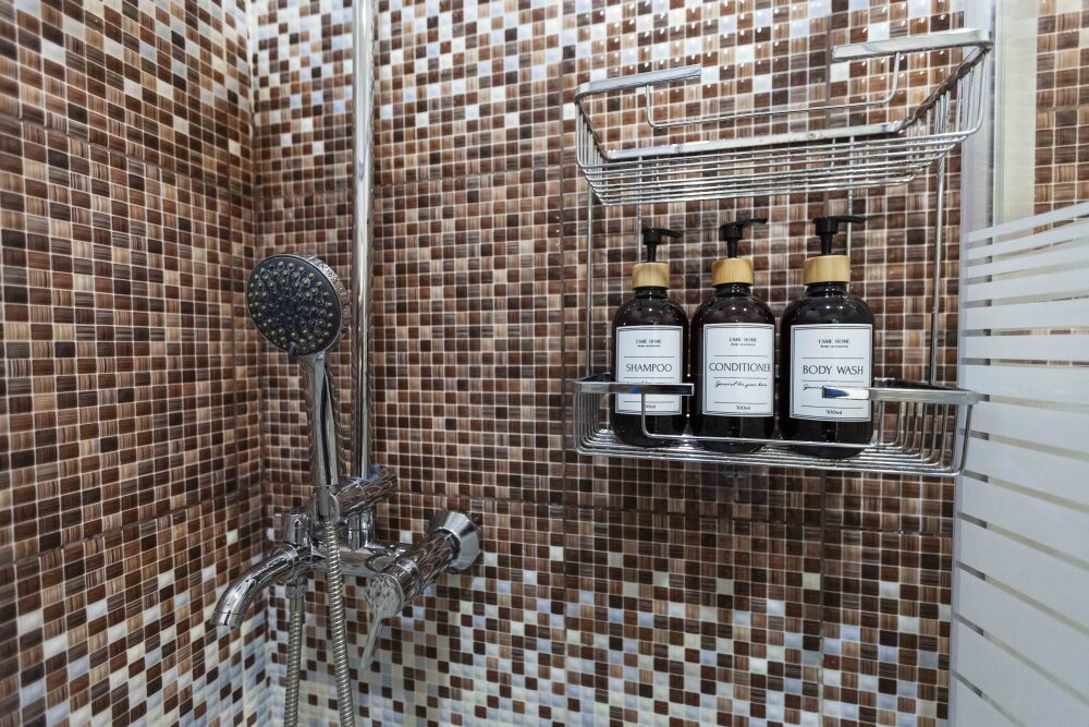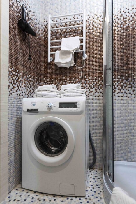 — Санузел: Стильный и функциональный, оснащенный всем необходимым для вашего удобства, включая стиральную машину и фен.