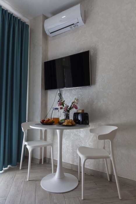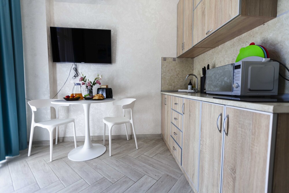 — Простор: 32 м² изысканно обставленного пространства, включая уютную кухню-гостиную и изолированную спальню, где каждый найдет уголок для релаксации.