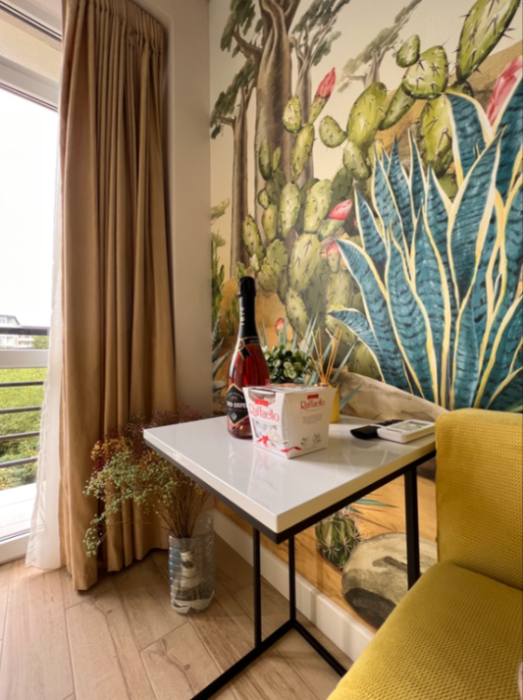 В квартире есть все, что нужно для комфортного проживания: тапочки, полотенца, предметы личной гигиены, постельное белье, посуда, бокалы, приборы, гладильная доска, утюг, фен, чай, кофе. А также, удобная кровать с ортопедическим матрасом, уютный диван-кровать. И, конечно, шикарный вид с балкона или панорамного окна на бамбуковую рощу. Ни один волшебный закат не пройдёт мимо Вас.