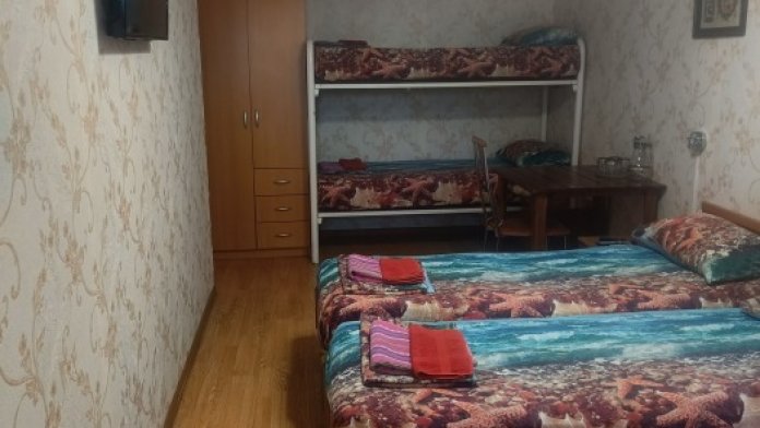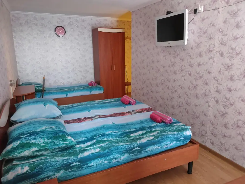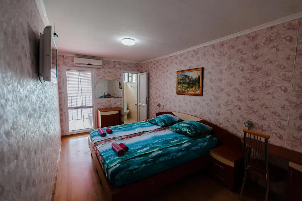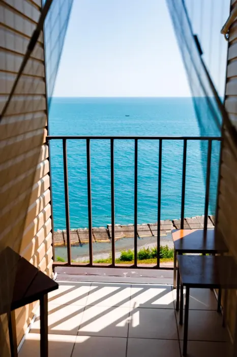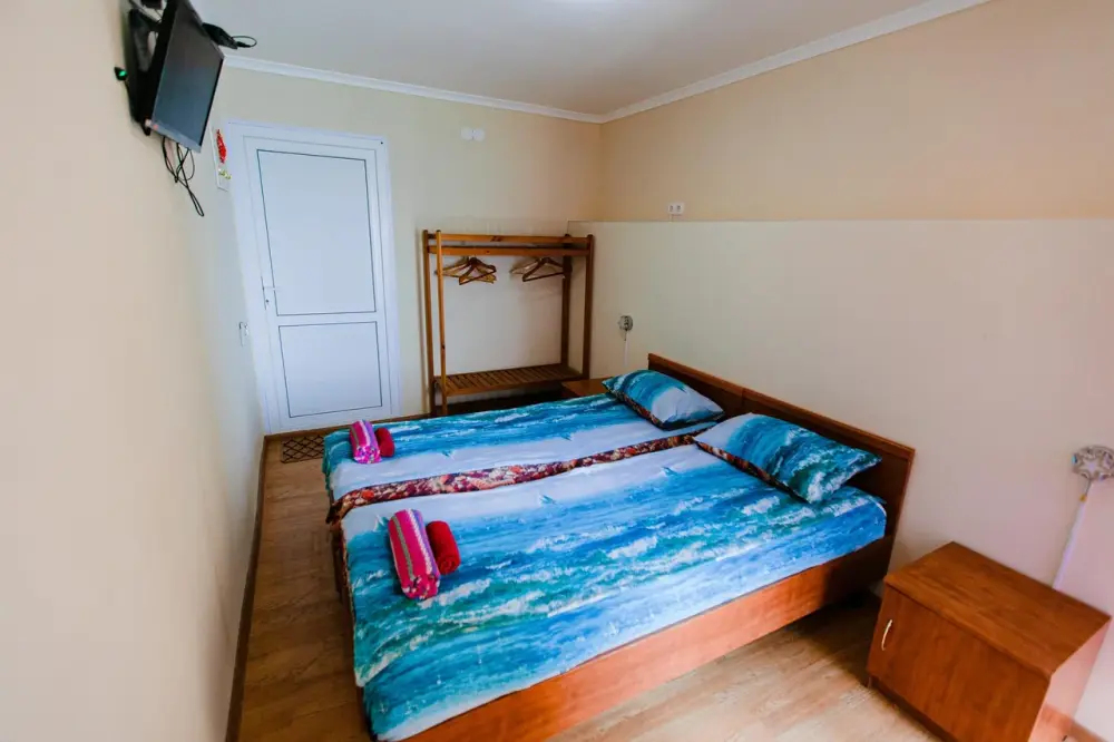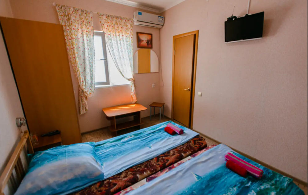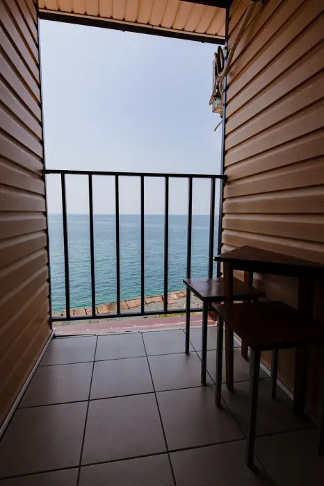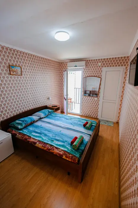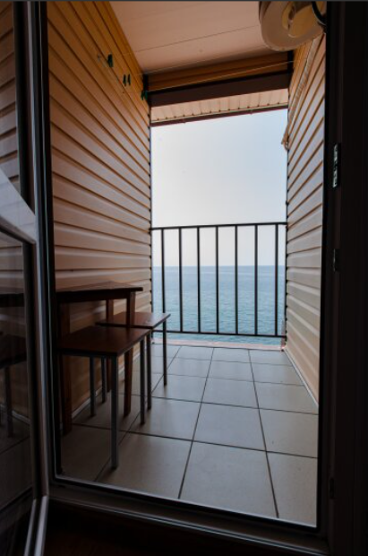 В каждом номере телевизор, кондиционер, балкон, санузел с душем. Во всех номерах вид на море.