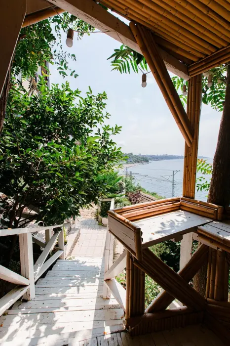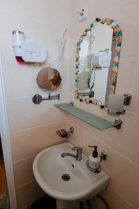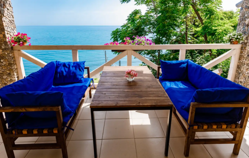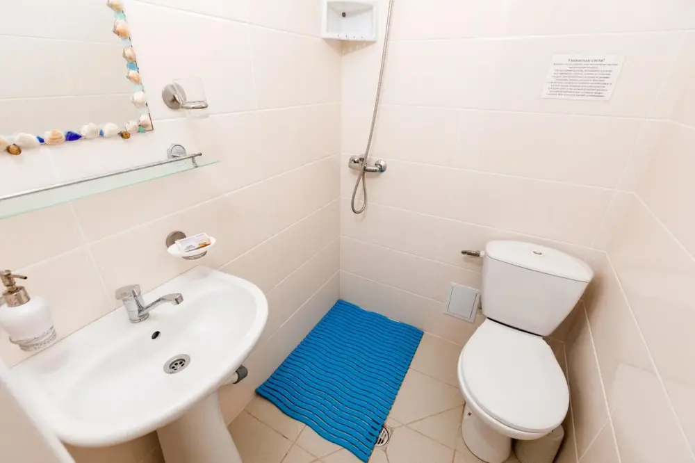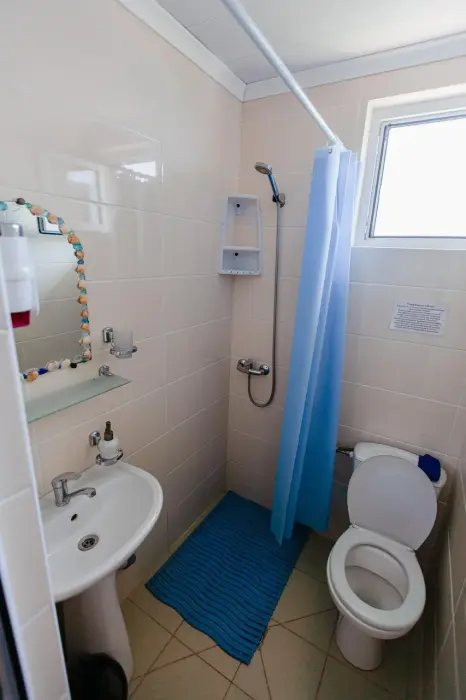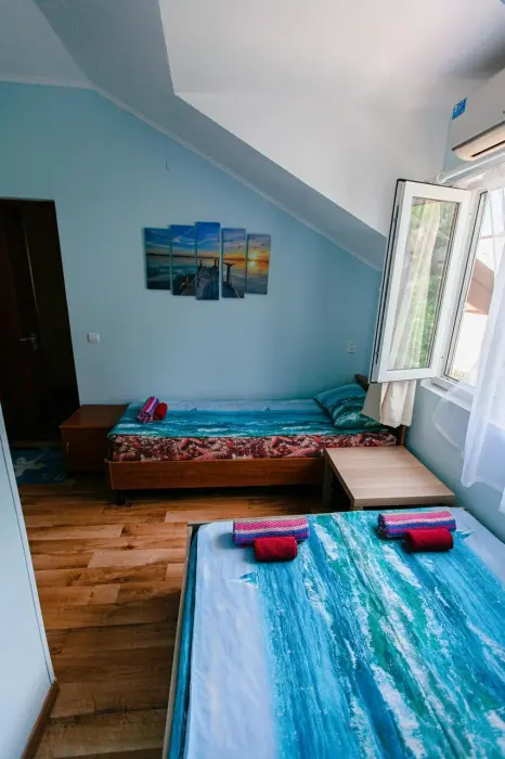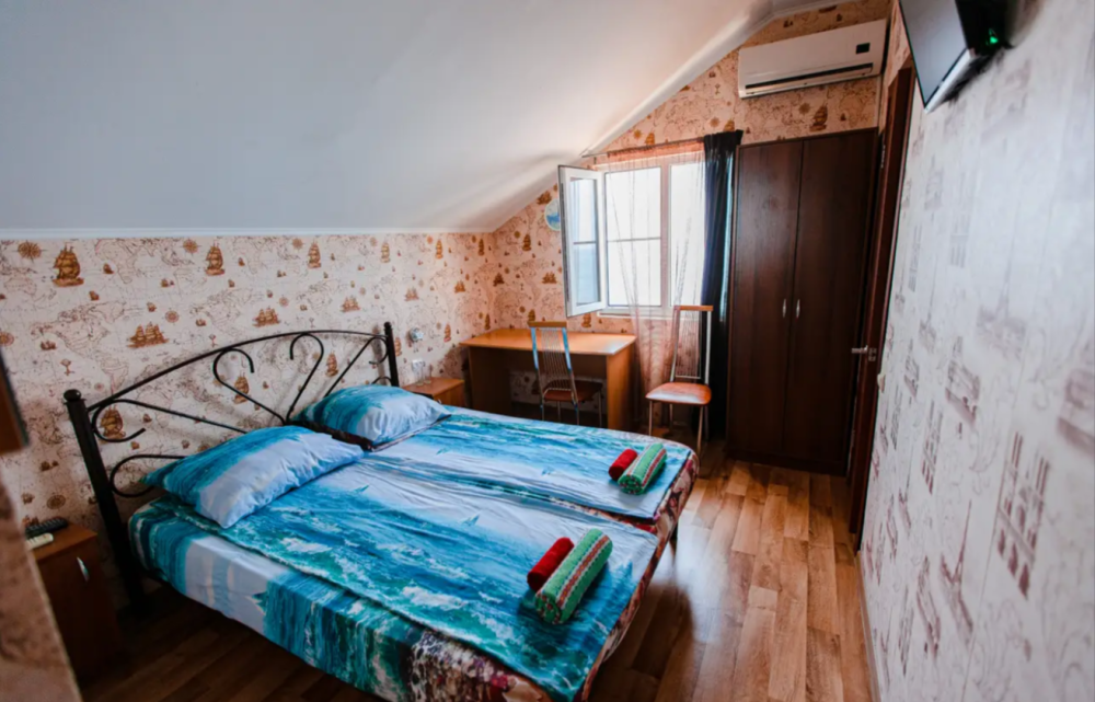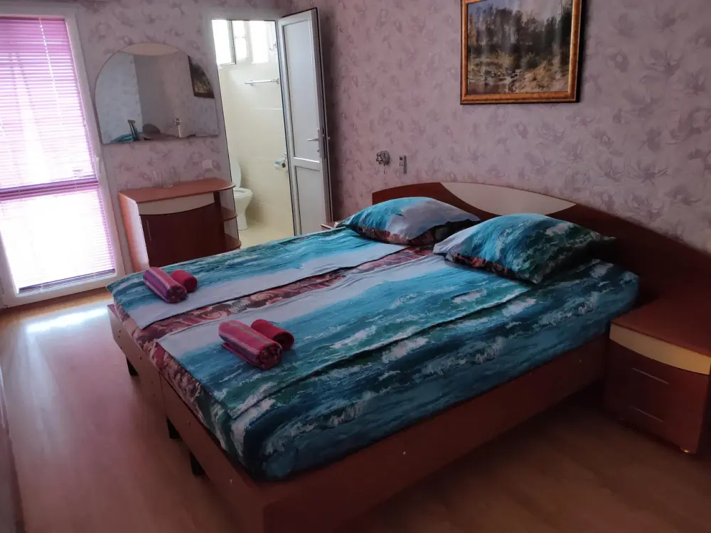 В каждом номере телевизор, кондиционер, балкон, санузел с душем. Во всех номерах вид на море.