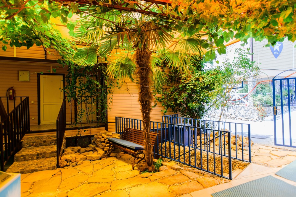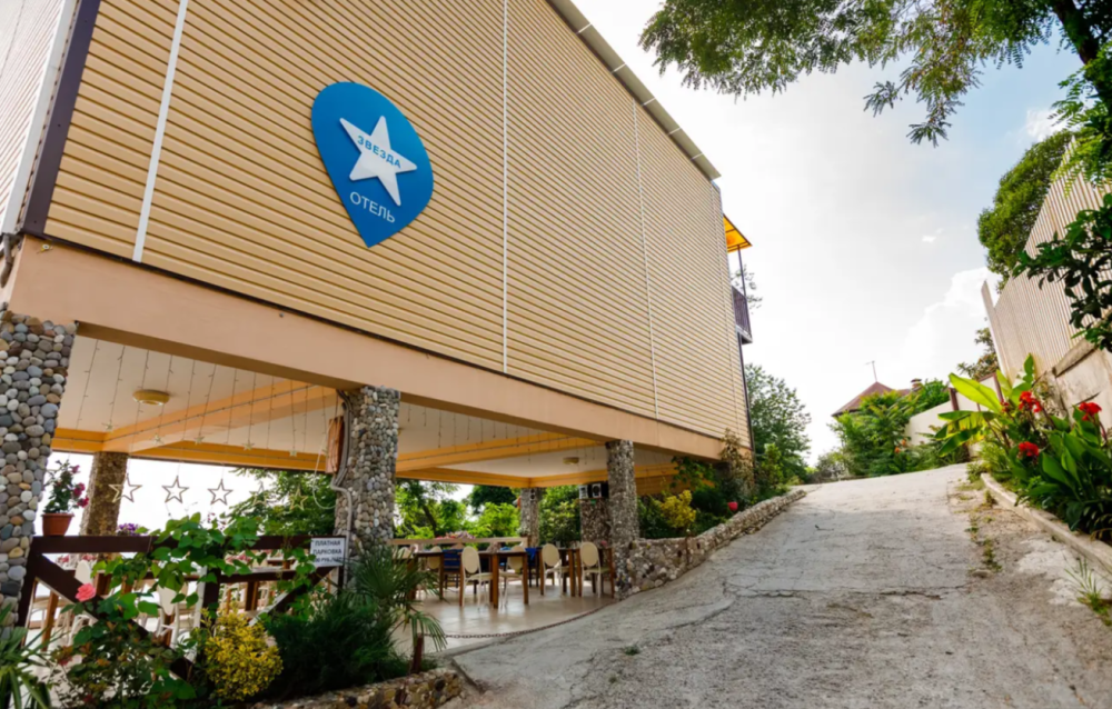Отель «Звезда» на самом берегу Черного моря в центральном районе г. Сочи. Бесплатный пляж в 50 м от отеля. До центра можно добраться на автобусе или электричке (10 минут до ж/д вокзала).
