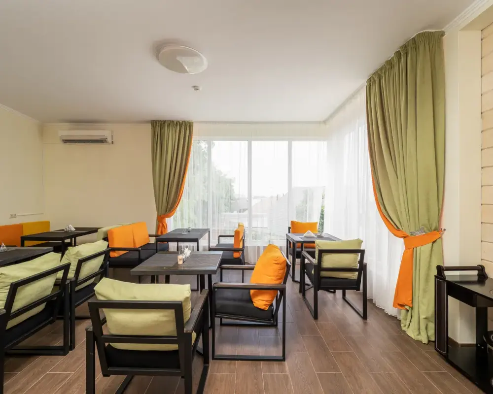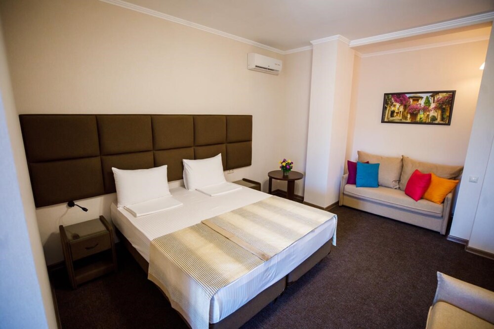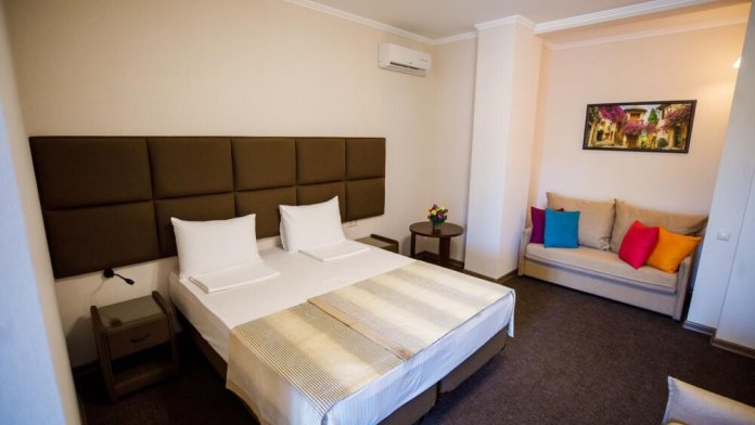 Для Вашего отдыха в отеле предложены разные категории номеров. Также к услугам гостей бесплатный Wi-Fi, парковка, стирки одежды и обособленная зона отдыха, где гости имеют возможность самостоятельно воспользоваться оборудованной гриль-площадкой. Номера оснащены новой мебелью с просторными кроватями и ортопедическими матрасами от фабрики Strong, кондиционерами, холодильником, чайником с комплементарным набором из кофе, чая и воды, многоканальное TV с плоским экраном и спутниковыми каналами. Все номера с собственным балконом, из некоторых открывается панорамный вид на море. Ванная комната укомплектована бесплатными туалетно-косметическими принадлежностями класса LUX компании Christophe, феном, махровыми халатами и тапочками.