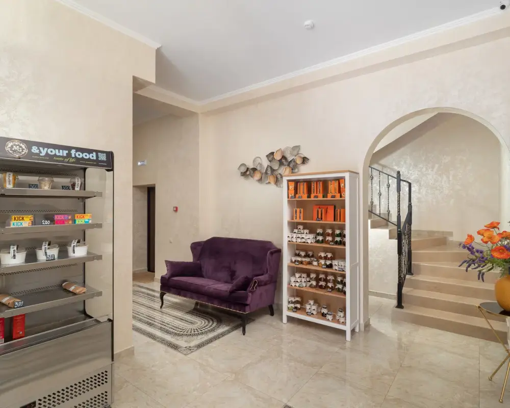 На первом этаже отеля расположен салон красоты, в котором гостям доступны услуги со скидкой: стрижка, укладка, уход и окрашивание волос, маникюр, педикюр, оформление бровей и ресниц. Отель находится в непосредственной близости к развитой транспортной инфраструктуре, что позволяет добраться до железнодорожного вокзала Сочи за 15 минут. Поездка до аэропорта Адлера занимает 30 минут по объездной дороге.