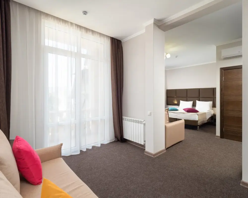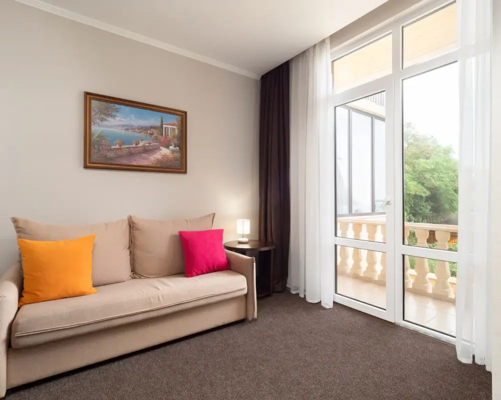 Полулюкс двухместный номер с балконом площадью 35 кв.м с видом на горы и море.