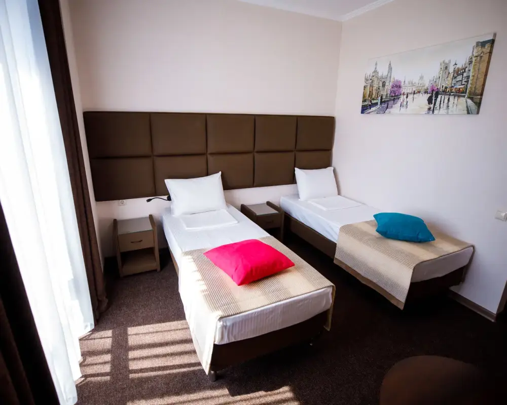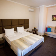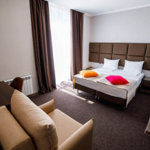 В номере: 1 двуспальная кровать или 2 односпальных кровати, 1 кресло-кровать.