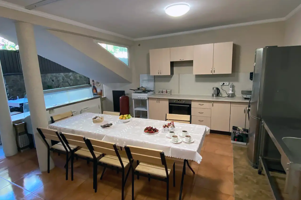 домашняя кухня-столовая на территории гостевого дома
