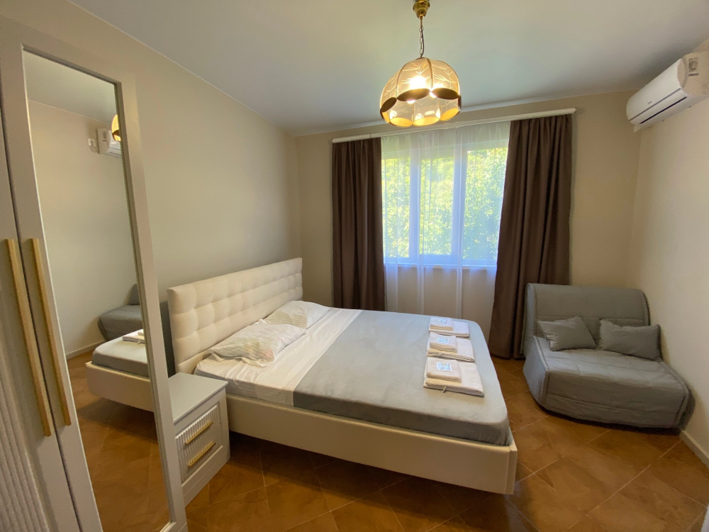 Поблизости расположены продуктовые магазины. Можно организовать доставку еды или посетить места общественного питания, где отдыхающие обязательно смогут вкусно перекусить по приемлемым ценам. До ближайшего пляжа около километра. Расстояние до международного аэропорта Сочи составляет 58 км, а до железнодорожного вокзала и автовокзала 31 км.