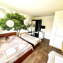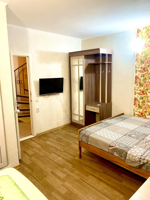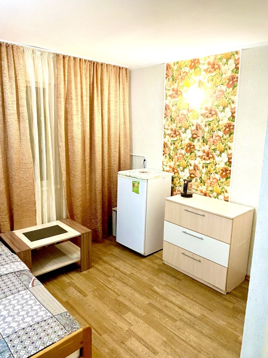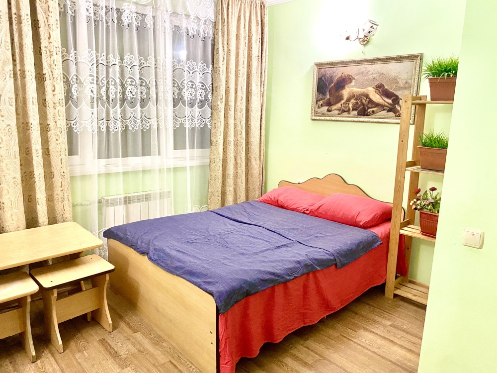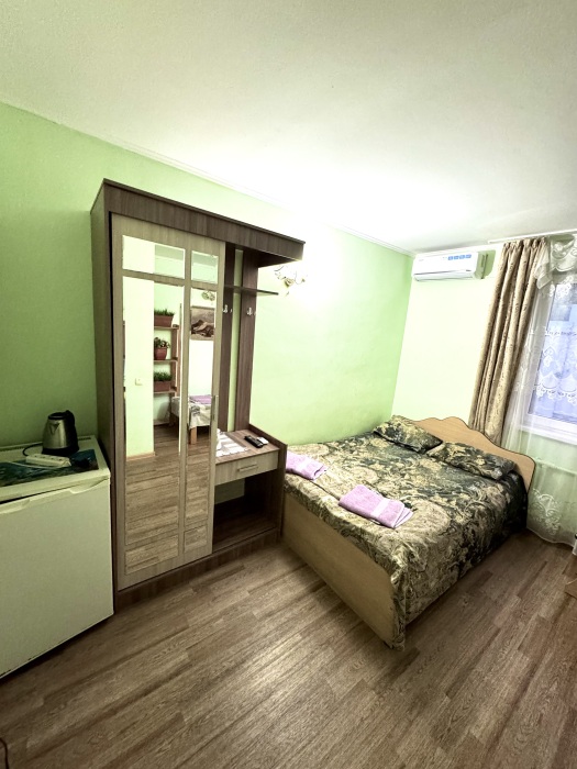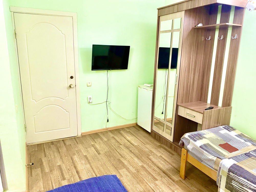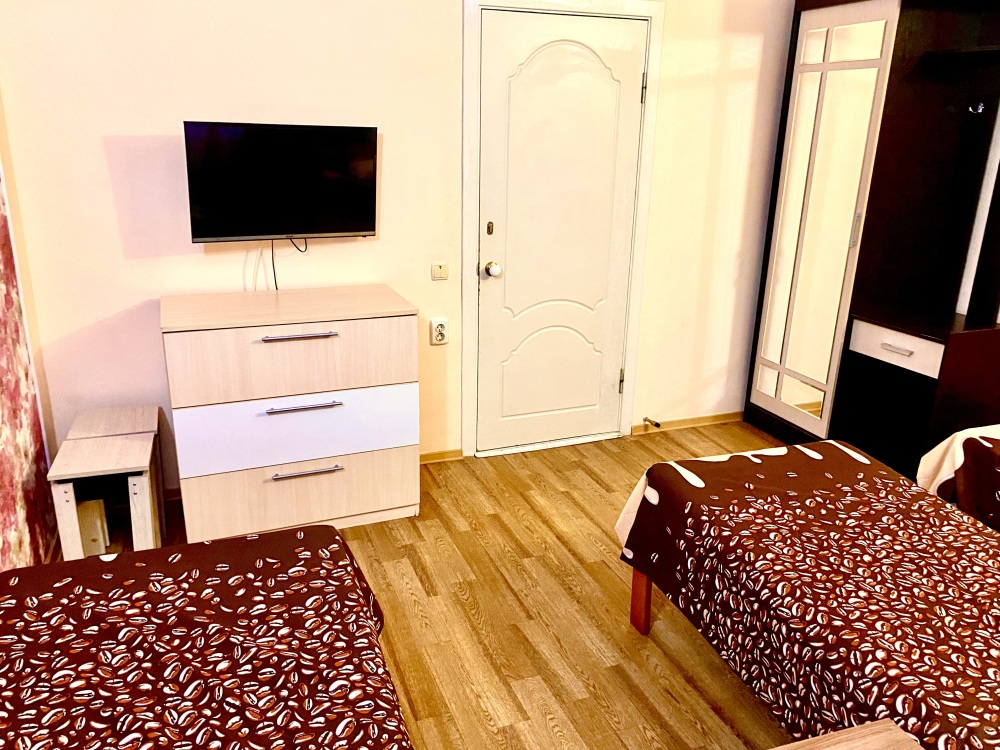 Номер на 4м этаже. В номере одна двуспальная кровать и одна односпальная кровать. Или две односпальные кровати и кресло кровать. Комплектацию номера уточняйте.