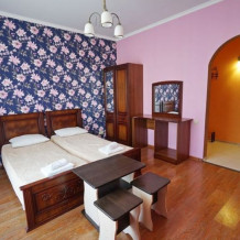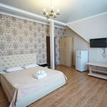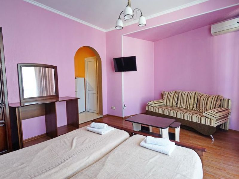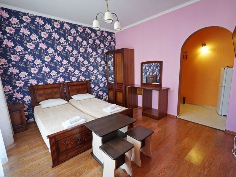 Мы предоставляем современные и уютные номера, в которые входит все необходимое, для комфортного проживания. Из большинства комнат открывается великолепный вид на горы. Во всех имеется: санузел, холодильник, телевизор, кондиционер. Бесплатно предоставляется интернет Wi-Fi. Холодное и горячее водоснабжение круглосуточно.