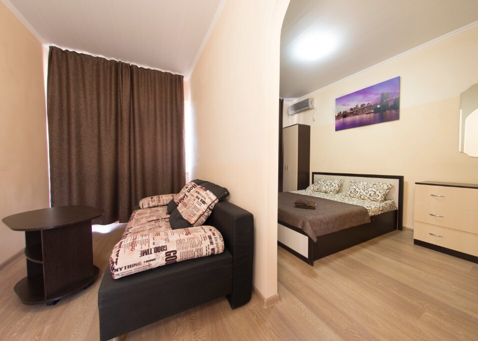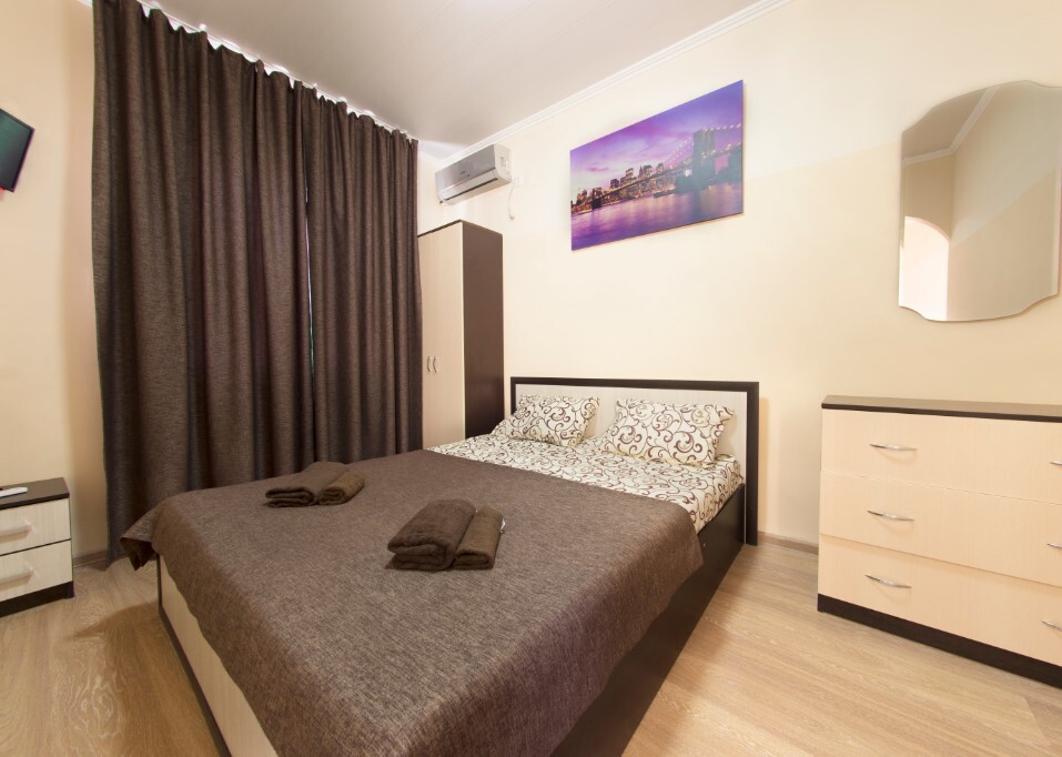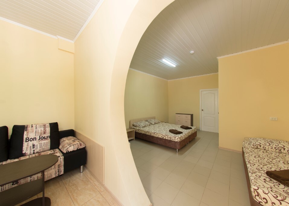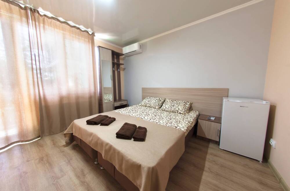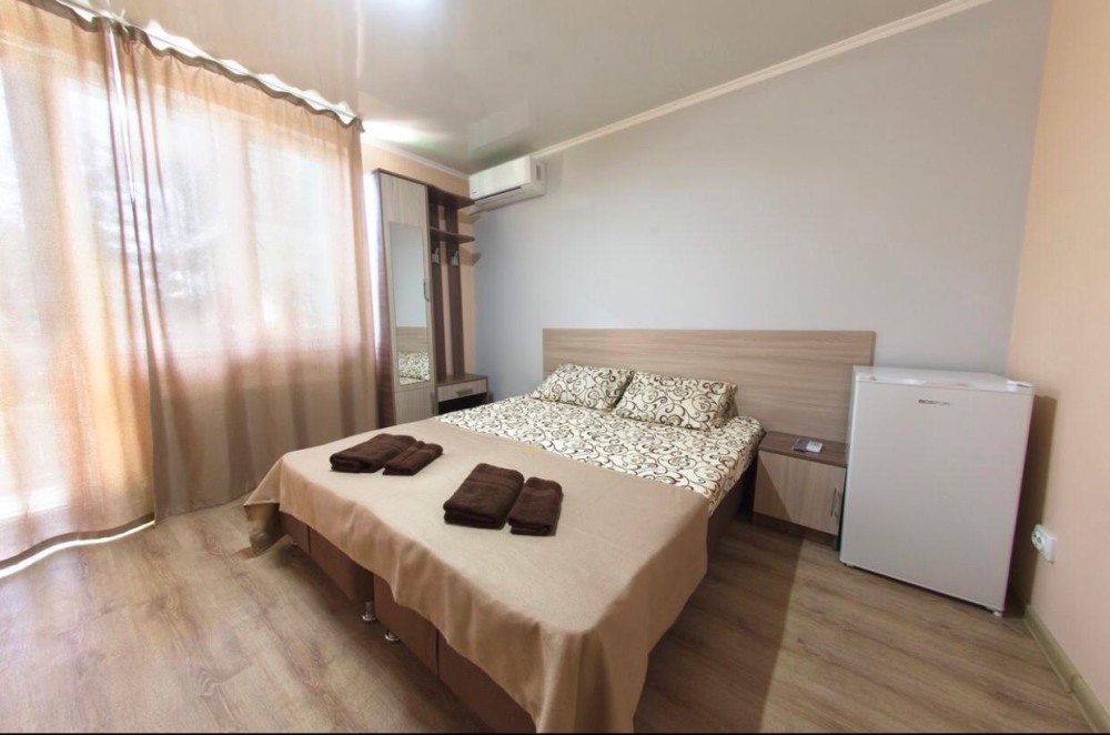 Гостевой дом на пять комфортных номеров. Здесь Вы можете отдохнуть в уютных 2-4 местных номерах со всеми удобствами на закрытой охраняемой территории. Предоставляются просторные, современные, автономные 2-4 местные номера под ключ со всеми удобствами (ванная комната в каждом номере, горячая и холодная вода круглосуточно, холодильник, телевизор,-спутниковое TV,кондиционер, мебель) бесплатный Wi-Fi. Во дворе много зелени, столики и беседка для отдыха, площадка для приготовления барбекю и летняя кухня со всеми принадлежностями и посудой.