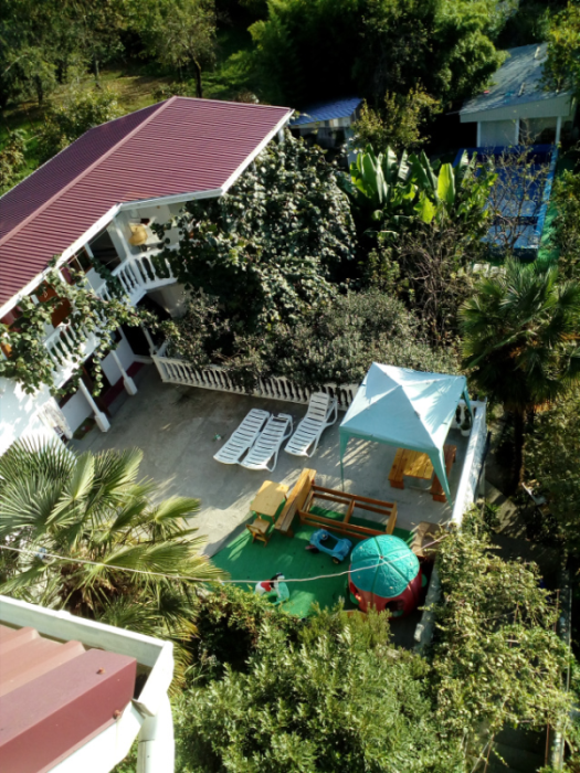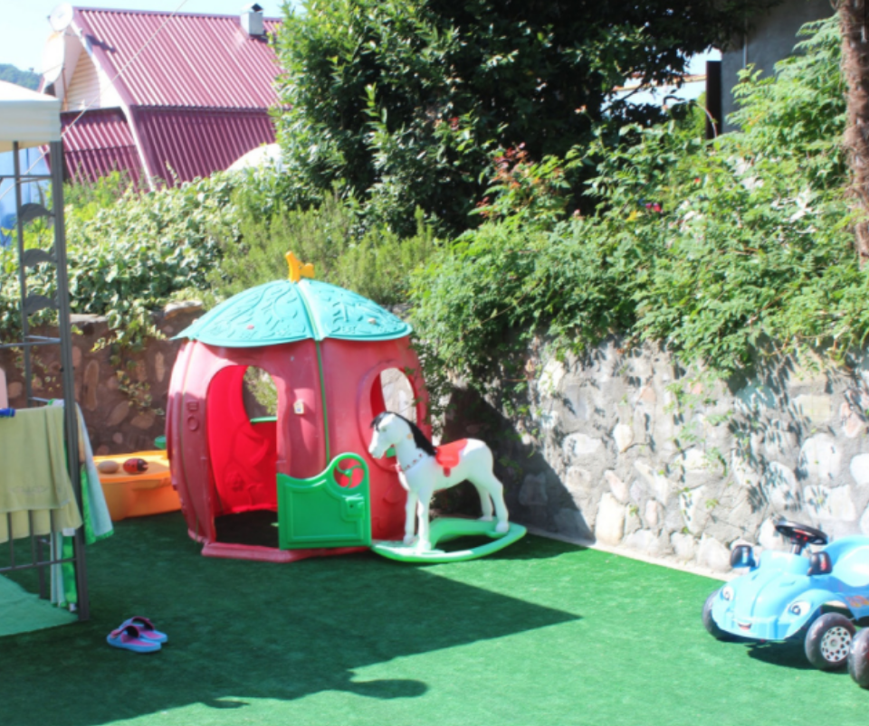 На территории нашего частного дома, для удобства наших постояльцев, мы оборудовали места для отдыха с беседкой и комплектами летней мебели, а наш просторный, весь утопающий в зелени и цветах двор, и наш открытый бассейн не только порадуют Вас, но и спасут от летнего зноя. Для принятия солнечных ванн у бассейна и на террасе установлены лежаки. Маленьких гостей ждет детская площадка с множеством игр и развлечений. В номерах и прилегающей к ним территории работает безлимитный Wi-Fi интернет. Любителям шашлычка - мангал и шампуры. А также всегда вкусно и недорого покушать Вы можете в нашей столовой. Туристам на личном авто предоставляется место на парковке.