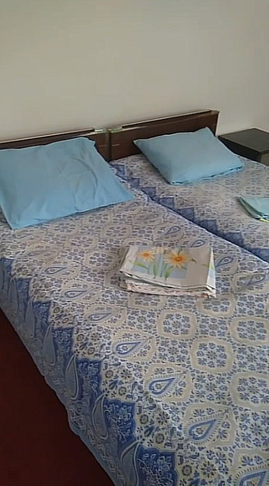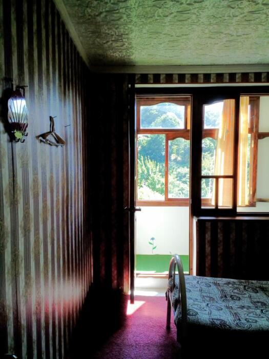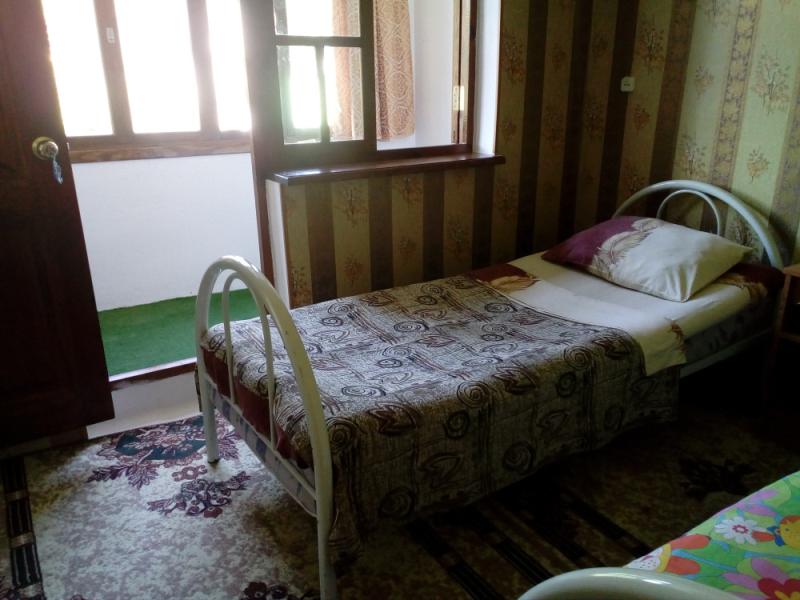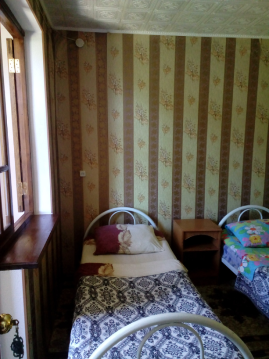 Для размещения отдыхающих мы рады предложить Вам по домашнему уютные, просторные однокомнатные и двухкомнатные номера с частичными удобствами и вместимостью от двух до шести человек, категорий «Эконом». Во всех номерах есть все необходимое для комфортного проживания: односпальные кровати, стулья, прикроватные тумбочки, журнальный столик, стол, вешалка, зеркало, обеденная зона, вентилятор, балкон с видом на море. Вода холодная, горячая - круглосуточно.