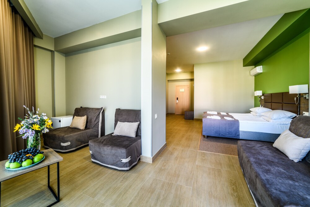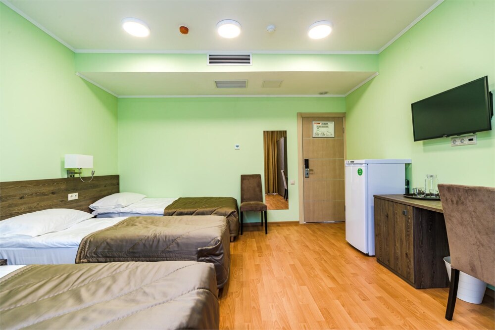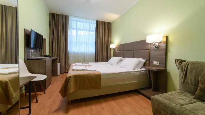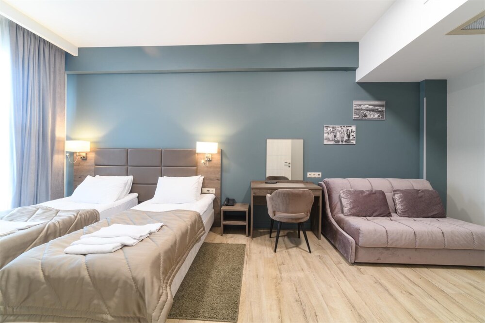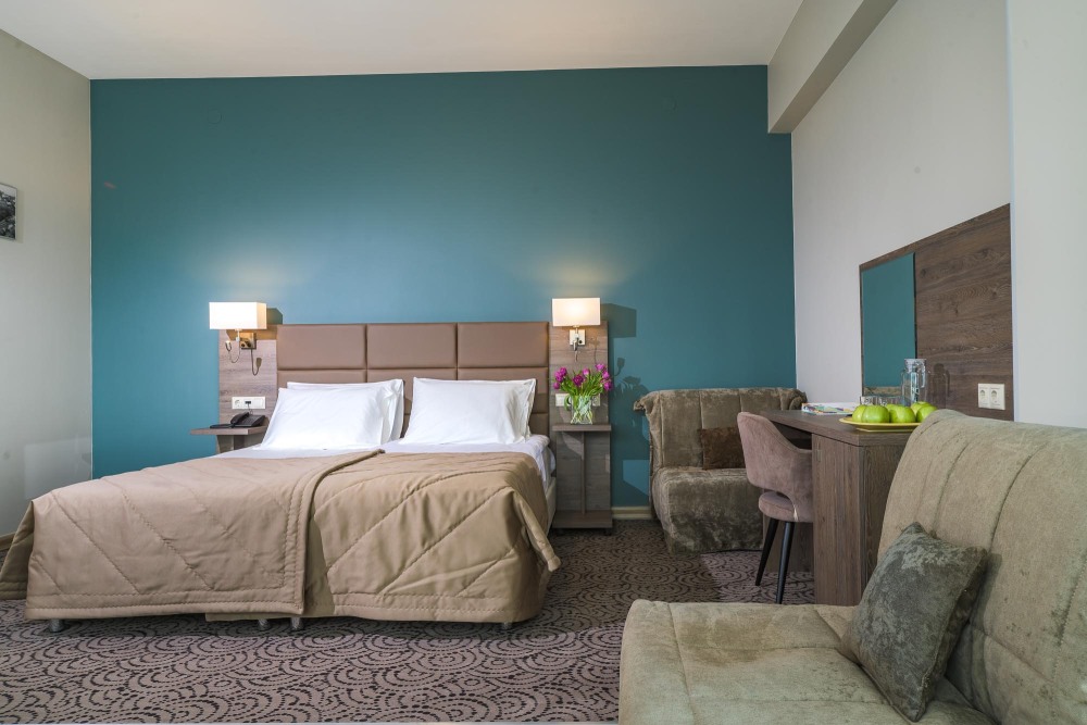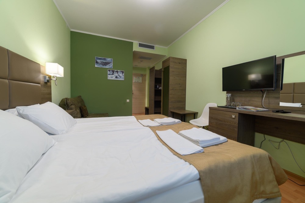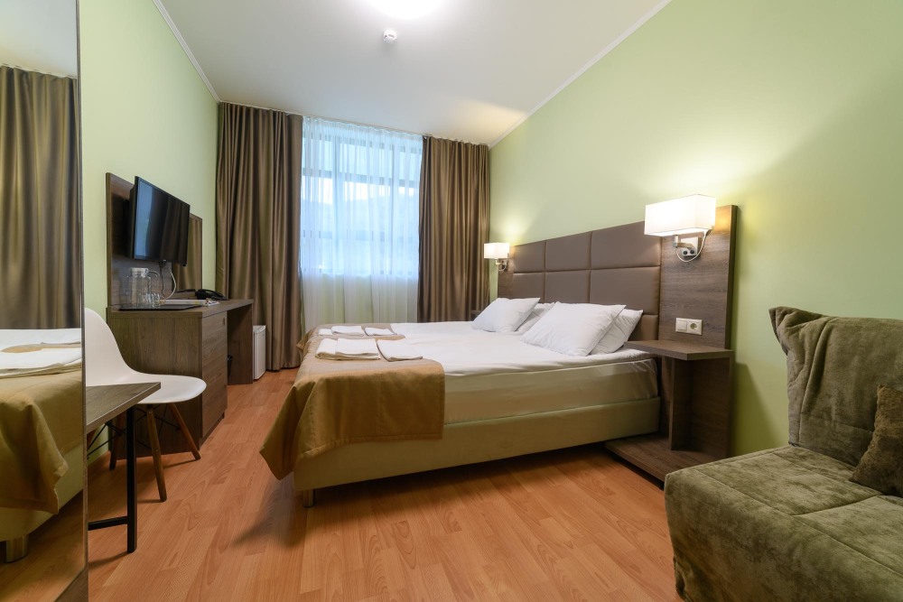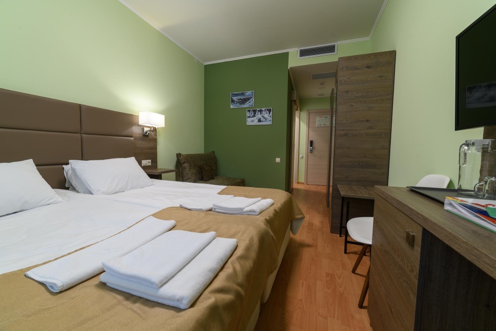 Комфортный номер подходит для размещения двух гостей или семьи из трех-четырех человек.
