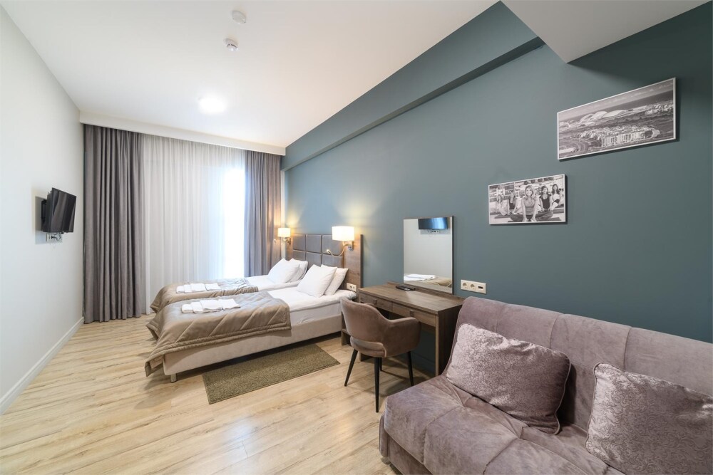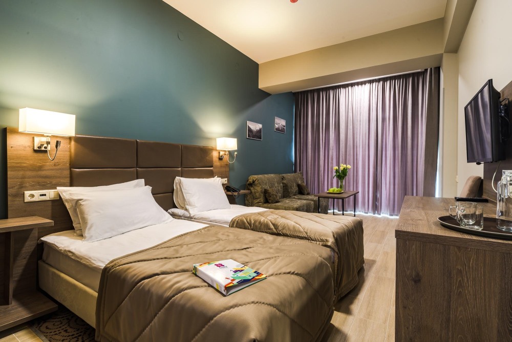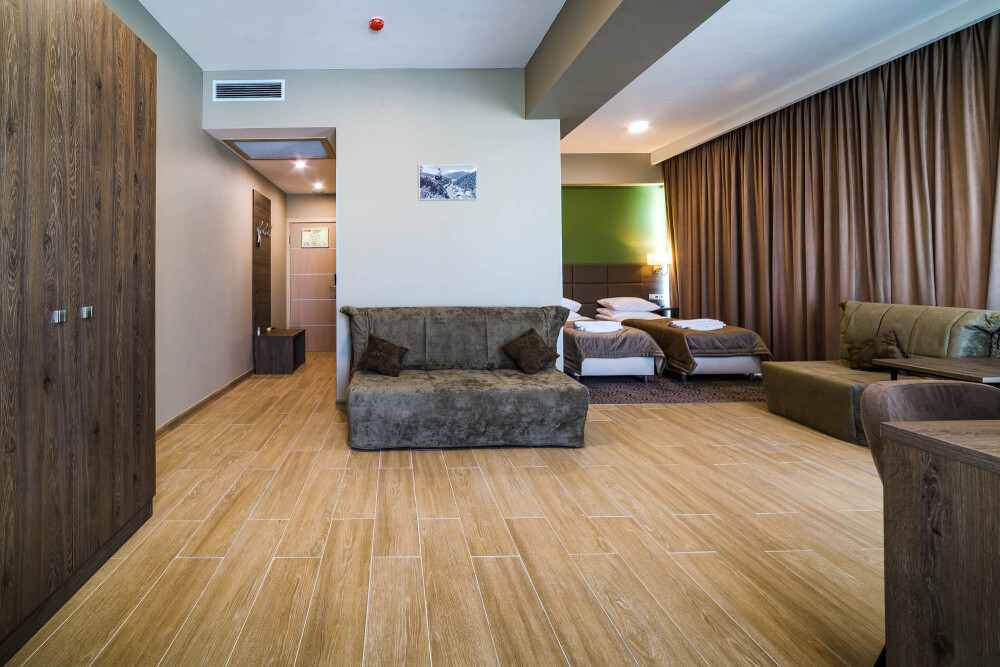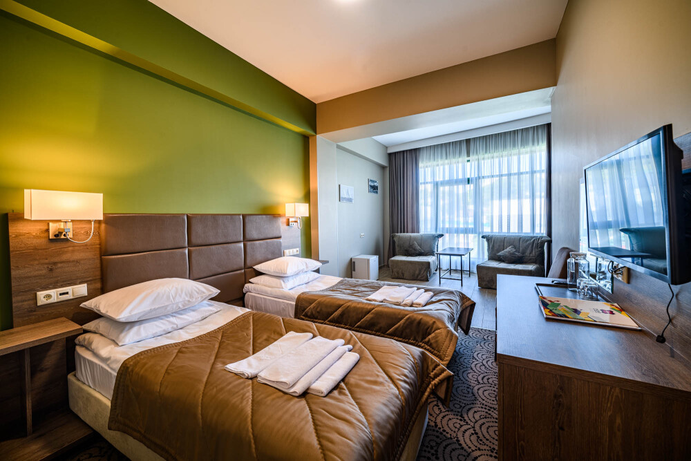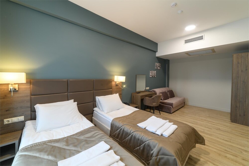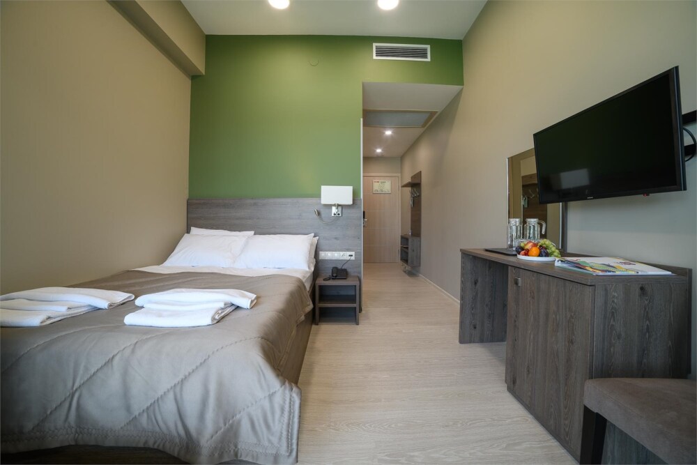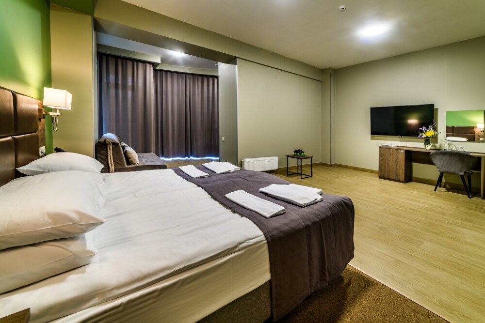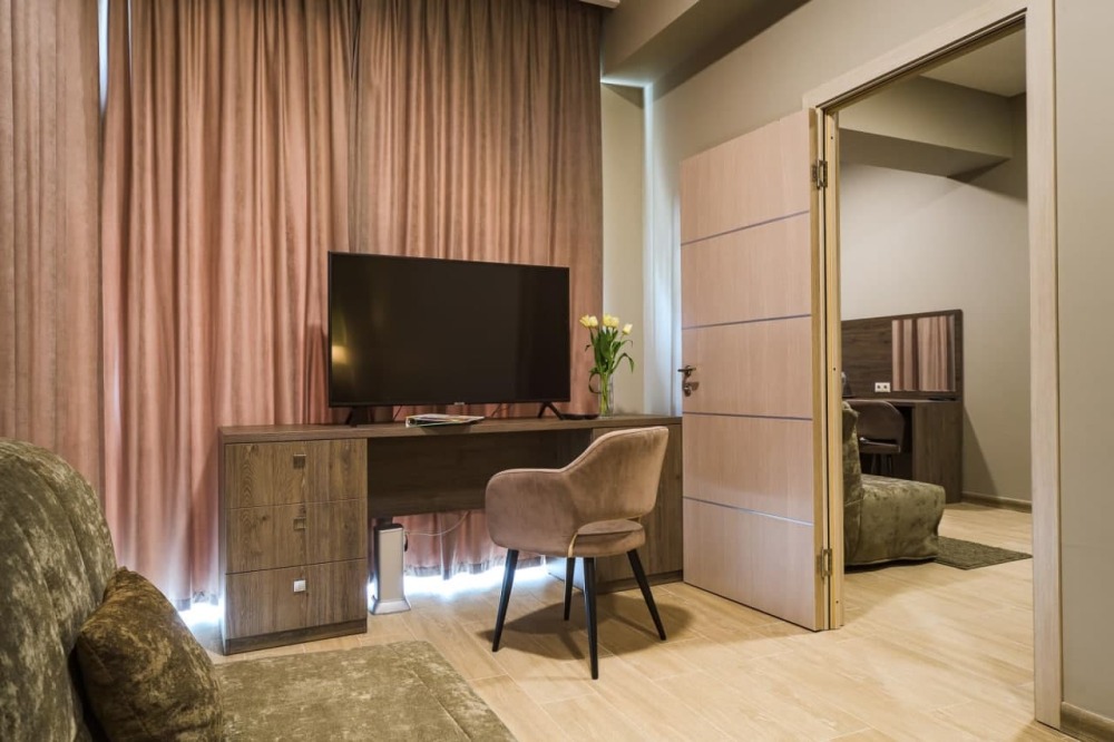 Комфортный номер подходит для размещения двух гостей или семьи из трех-четырех человек.