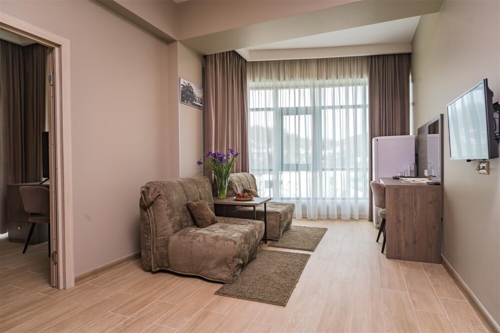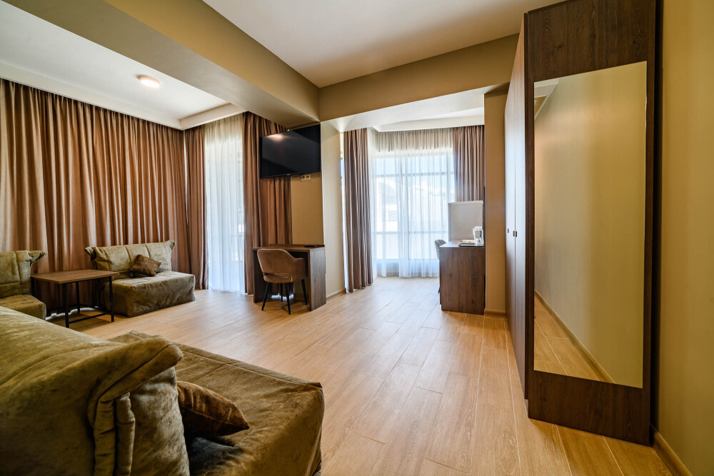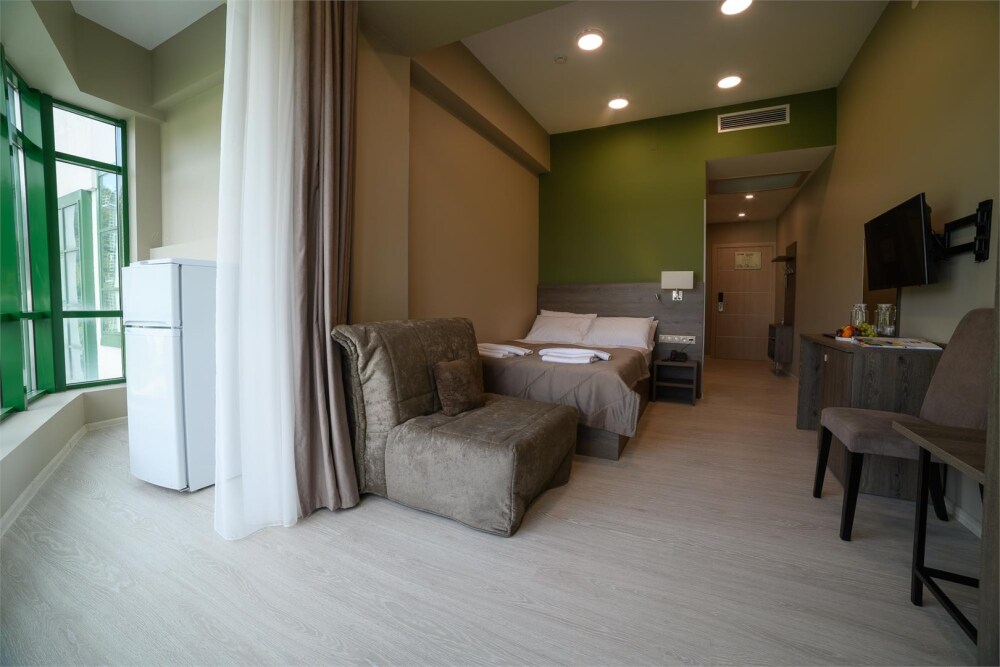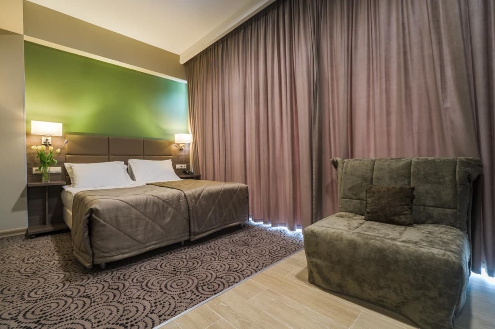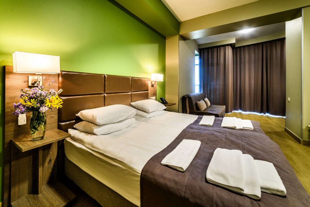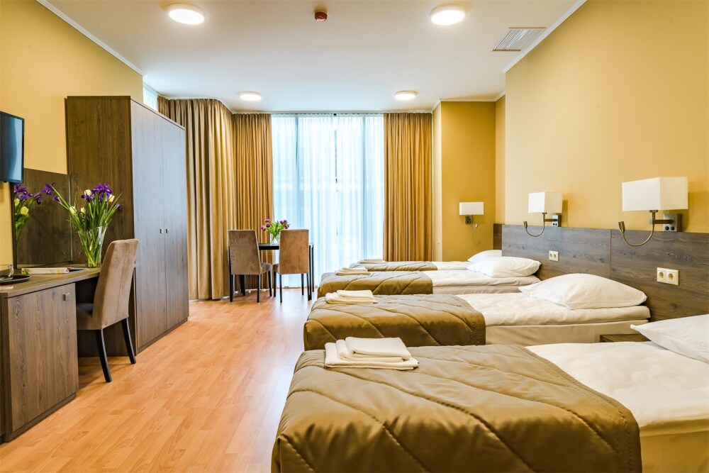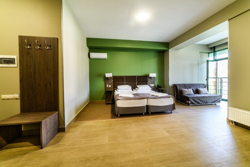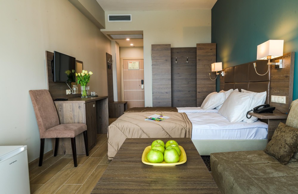Комфортный номер подходит для размещения двух гостей или семьи из трех-четырех человек.