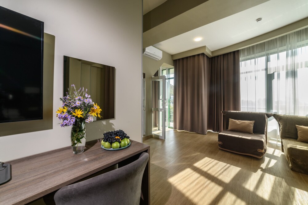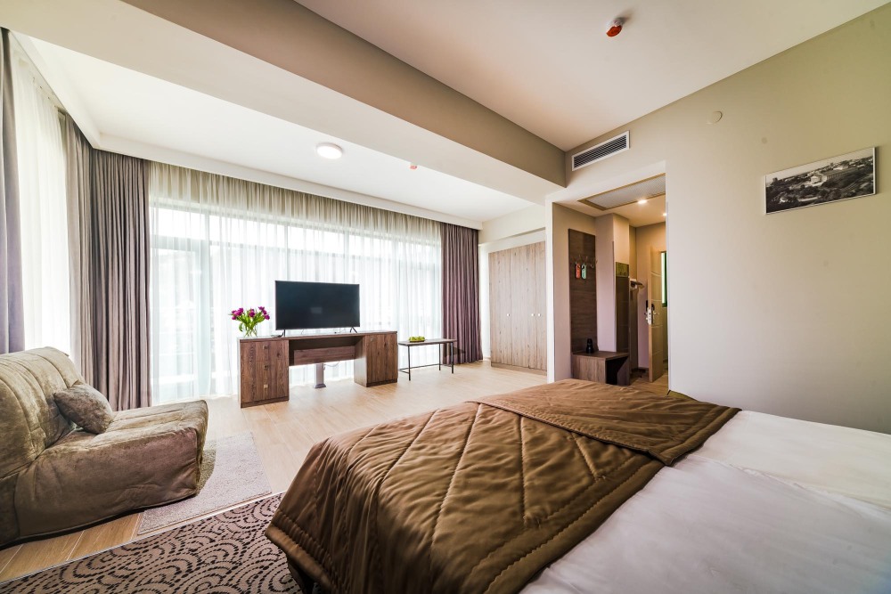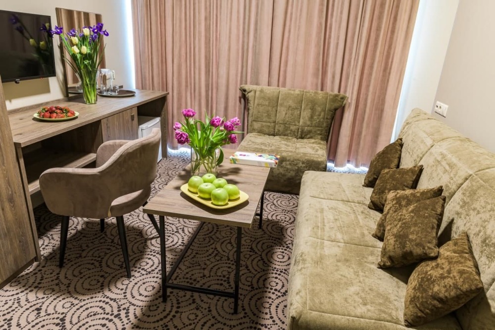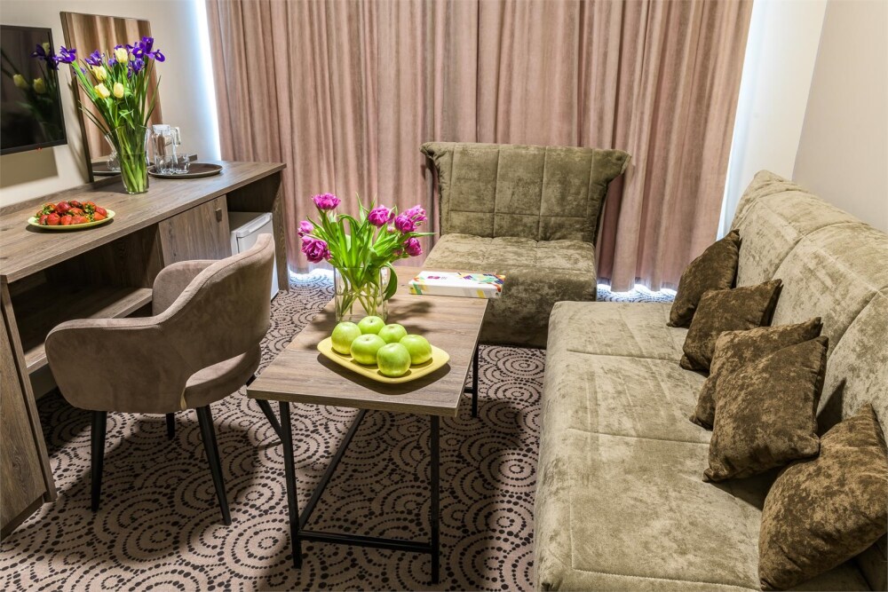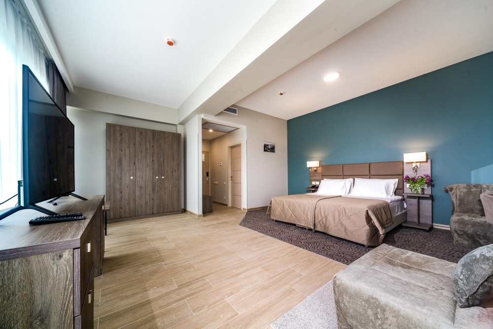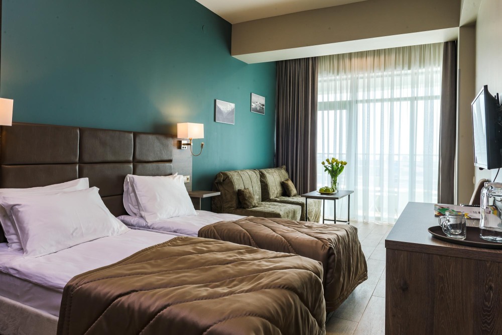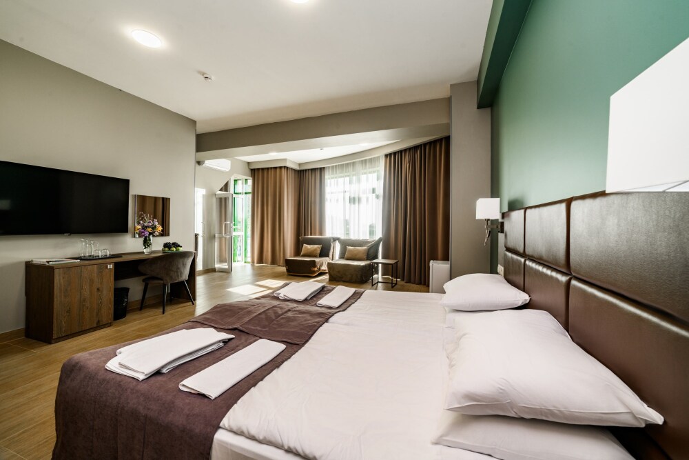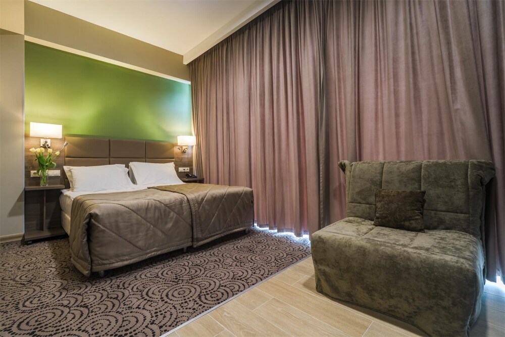 Комфортный номер подходит для размещения двух гостей или семьи из трех-четырех человек.