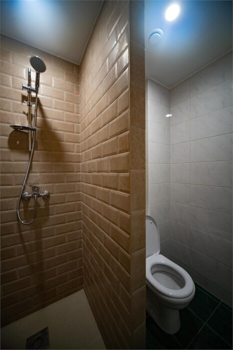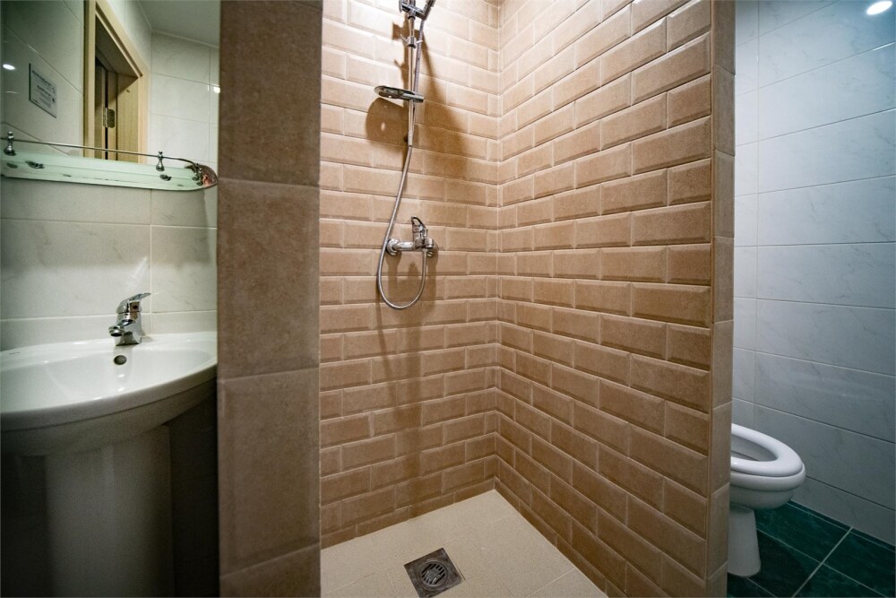 Санузлы расположены рядом с номером. В каждом санузле: душ, умывальник, унитаз.