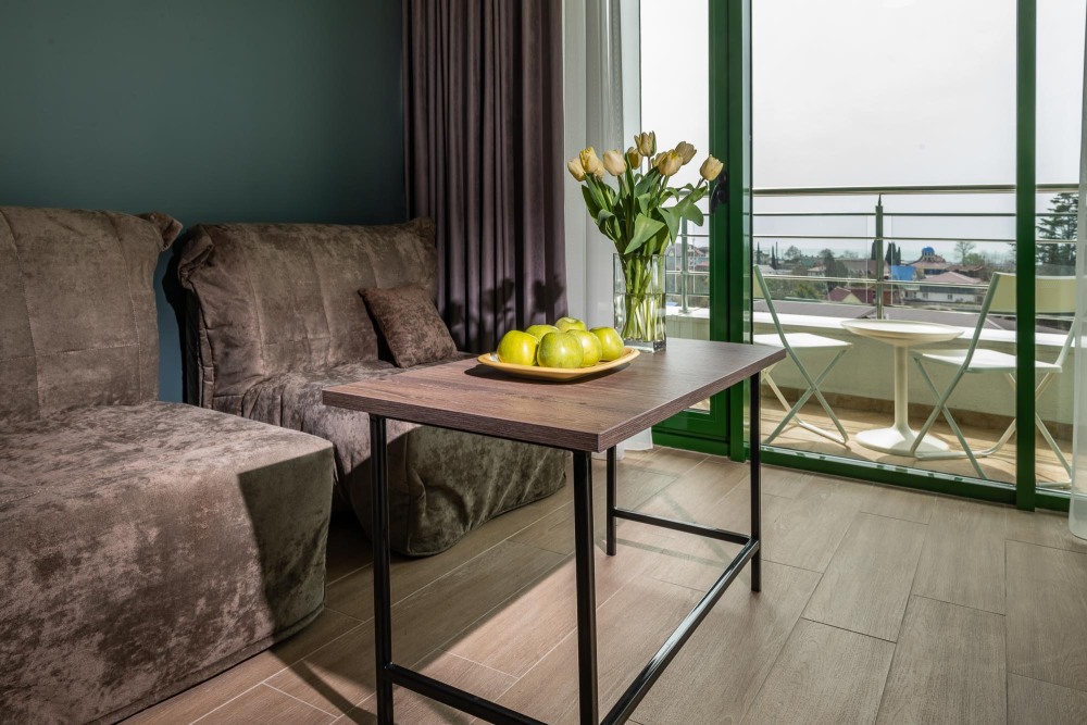 Субтропики граничат с Альпийской зоной, 26 метров над уровнем моря, 300 солнечных в году. Теплый морской бриз чередуется со свежим горным ветерком Кавказских гор, целебный аромат бука и каштана, южные плантации чая создают уникальный микроклимат места.