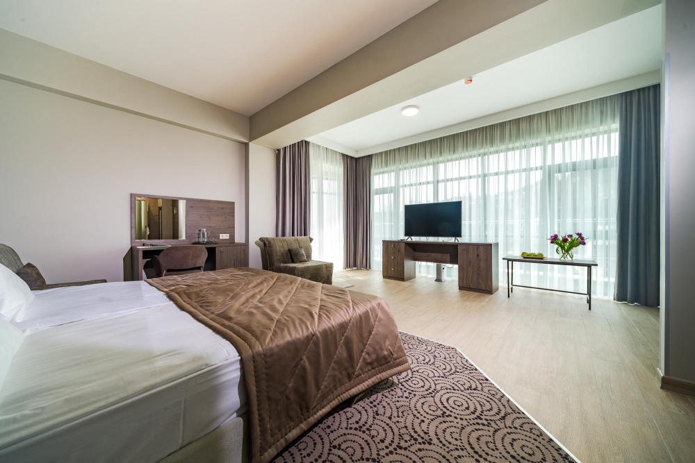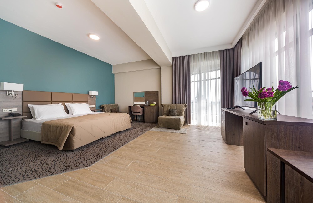 К услугам гостей 115 уютных номеров, которые располагают к полноценному отдыху, спортивный центр, велнес и фитнес программы, спа-центр с пятью видами бань, центр красоты, комплекс ресторанов и баров конгрессные услуги и детский центр.