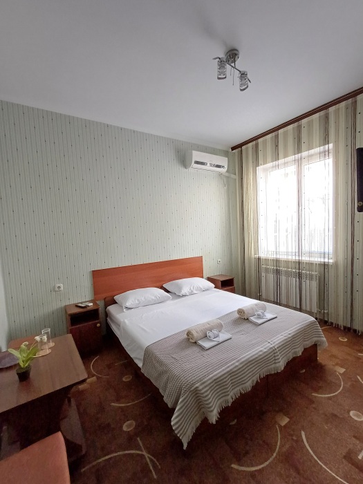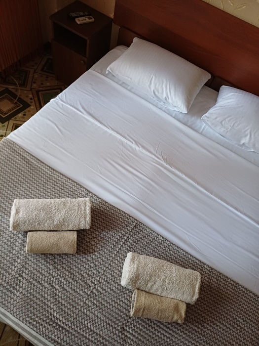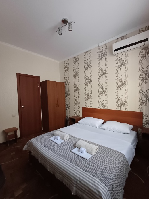 Двухместный номер расположен на 2,3 этаже. В номере:двуспальная кровать, прикроватные тумбочки, шкаф, холодильник, журнальный стол, сплит-система, телевизор, москитная сетка. Санузел совмещённый в номере. Wi-fi на всей территории. 1 этаже кухня общего пользования со всем необходимым для приготовления пищи:столовые приборы, посуда, свч (07:00-22:00). Для гостей с автомобилем (при наличии места) бесплатная парковка под шлагбаумом.