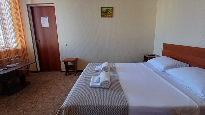 Каждый номер оснащен всем необходимым: спальные места, плоский телевизор, холодильник, сплит-система, санузел с душем, туалет, прикроватные тумбочки, журнальный стол.
