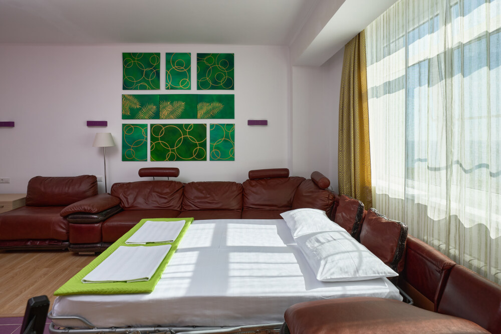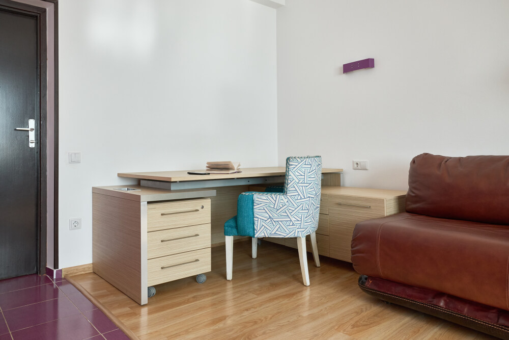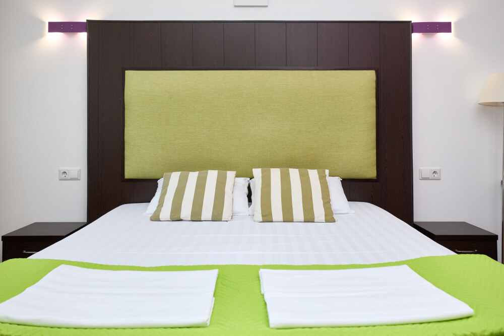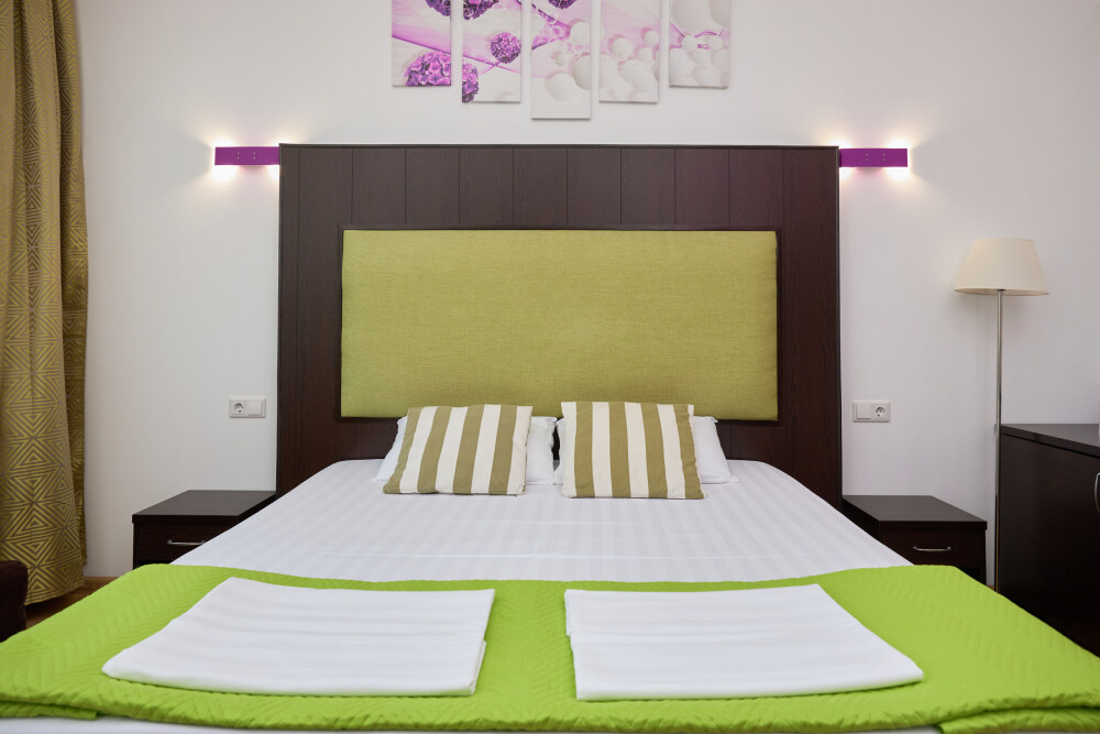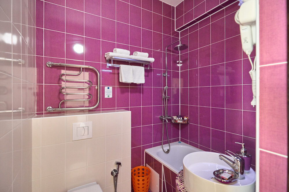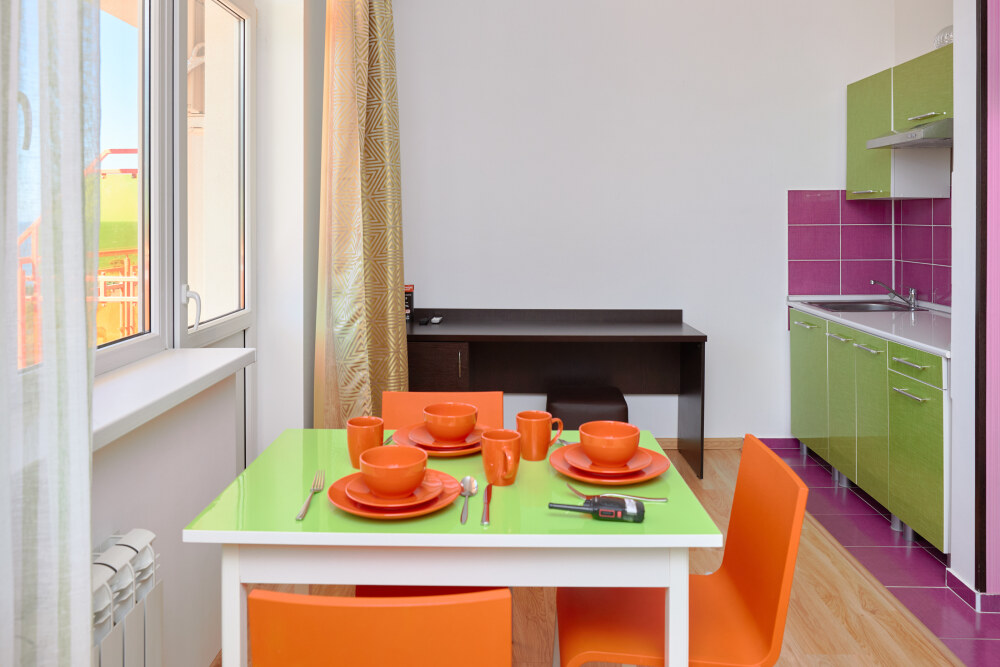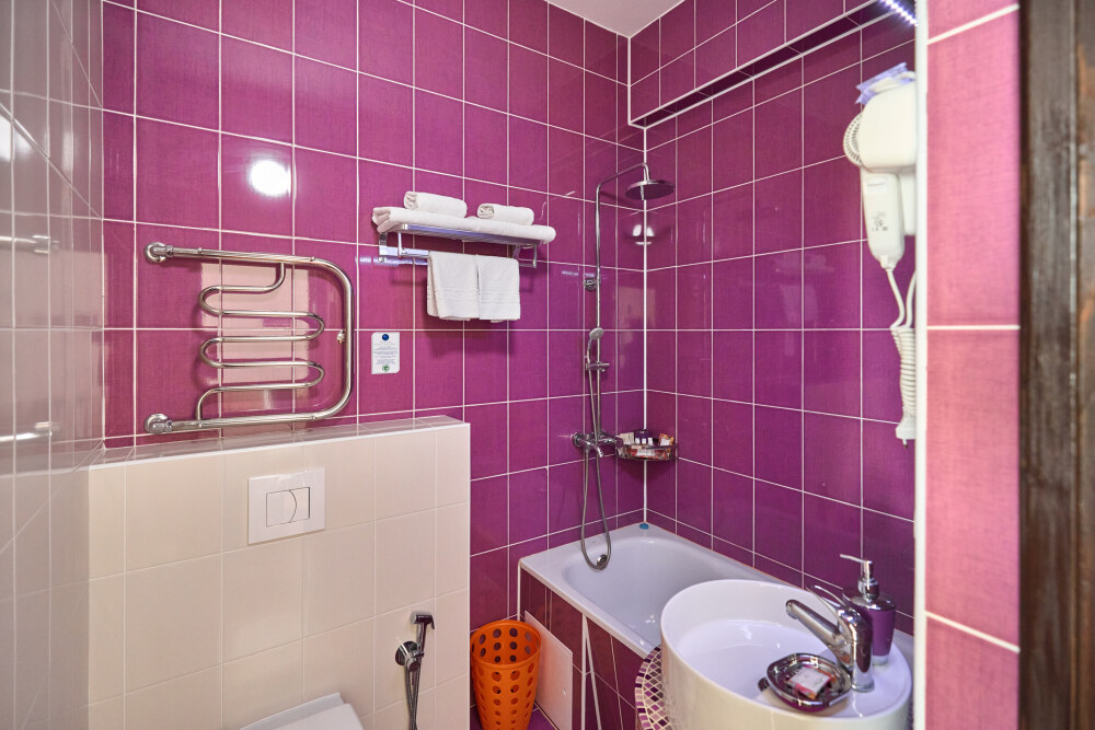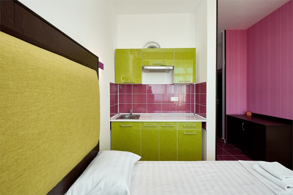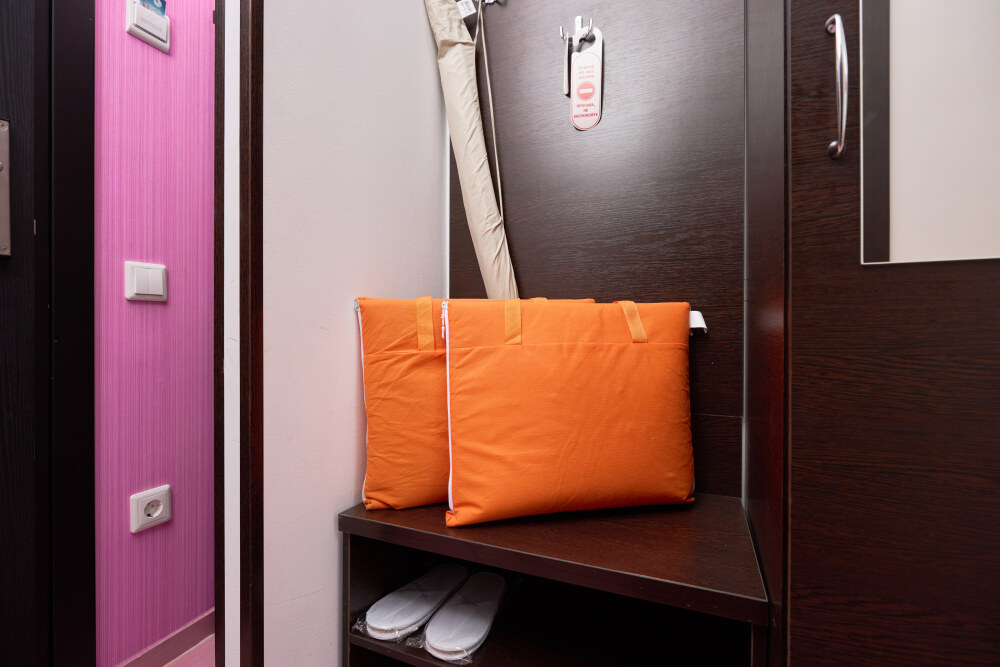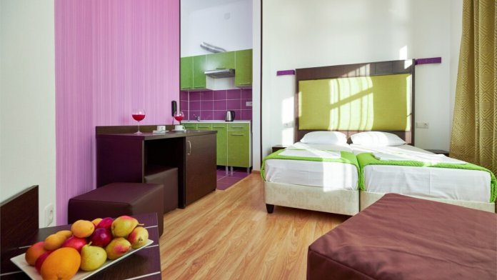 3-х местный номер Эконом без балкона подойдет для бюджетного размещения 3-4 человек оборудован кухонным уголком с обеденным столом, столовой посудой и эл.чайником. Для размещения 4го гостя в номере есть пуф, трансформирующийся в полноценную дополнительную кровать. Возможно размещение ребенка 3-6 лет на кровати с родителями или люля для ребенка 0-3 года.