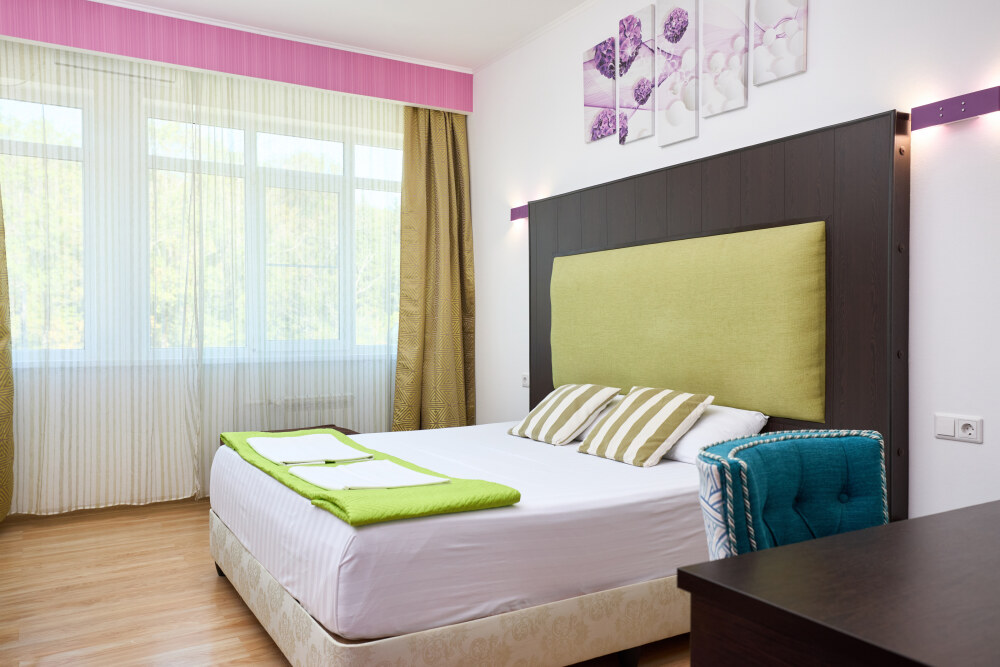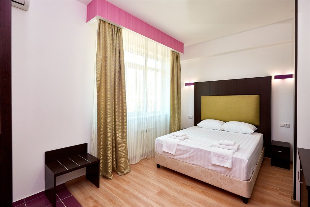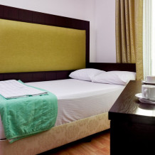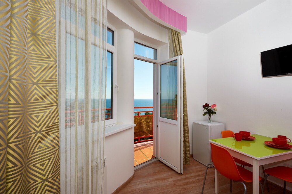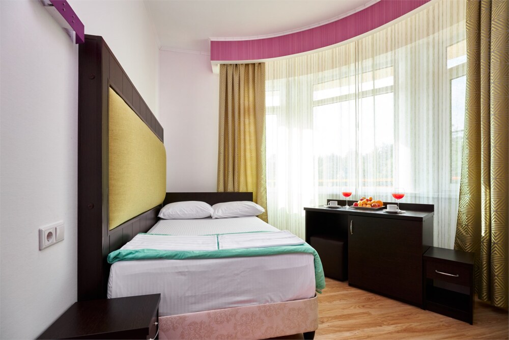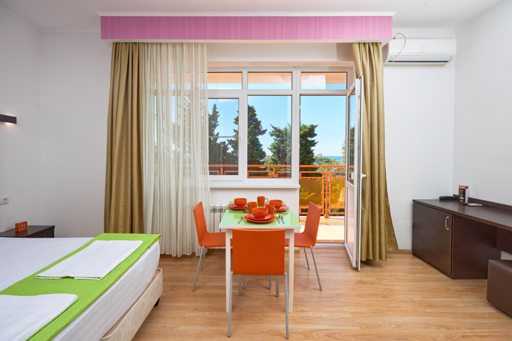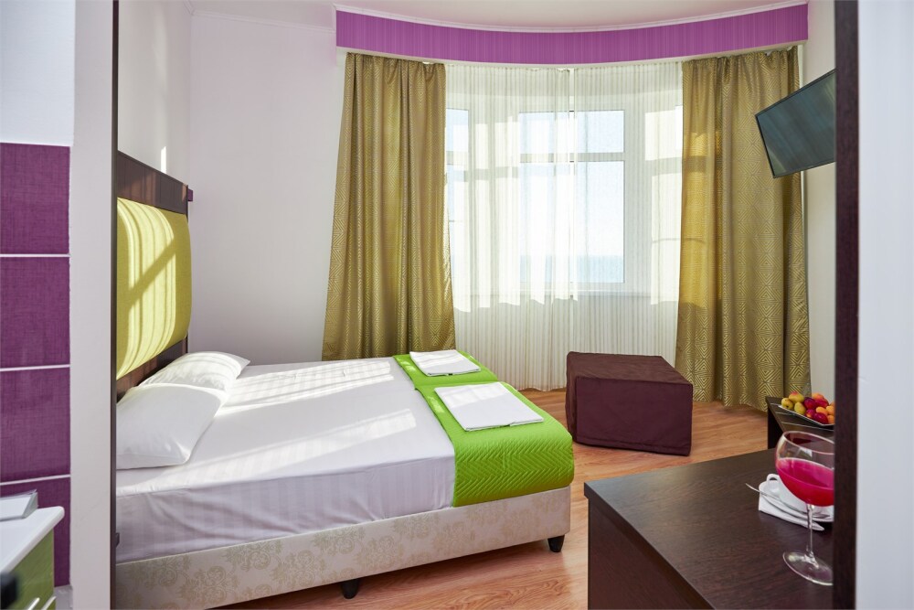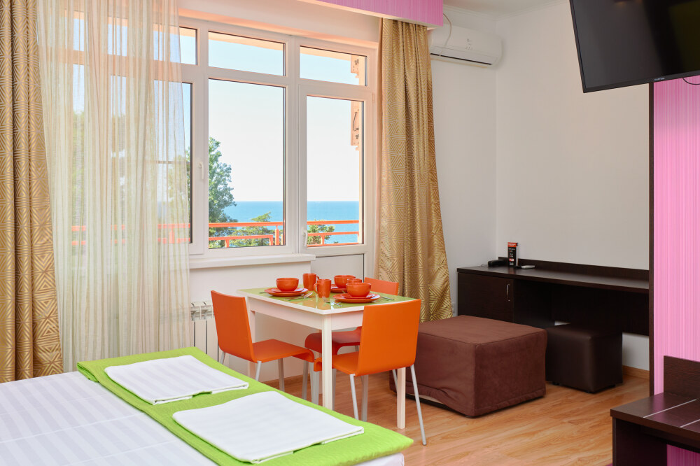 Стандартный 2-местный номер с одной двуспальной кроватью или 2-мя раздельными кроватями из окон которого открывается вид на береговую линию моря, а в вечернее время можно любоваться картиной солнечного заката в морской горизонт, сидя на балконе номера. Номер подходит для размещения 3-х гостей. Для размещения 3 го гостя в номере есть пуф, трансформирующийся в полноценное спальное место. В номере есть столовая посуда и столовые приборы, прохладу в нем обеспечивает сплит-система, окна оснащены москитными сетками. Курение в номере не допускается.