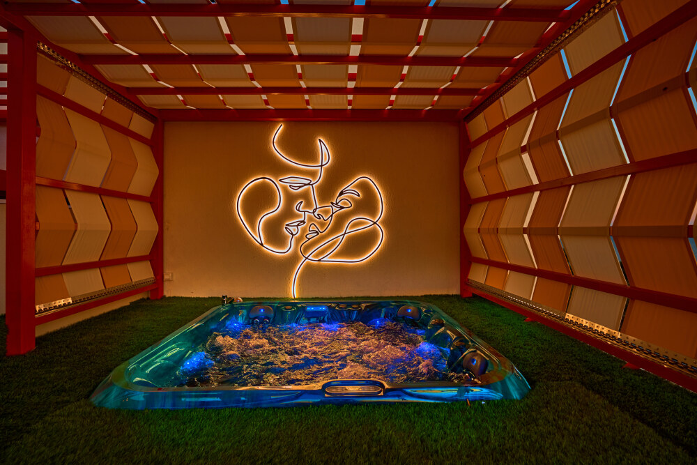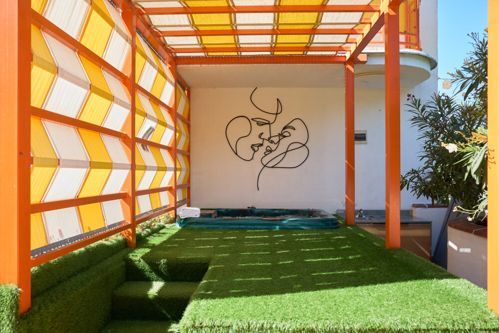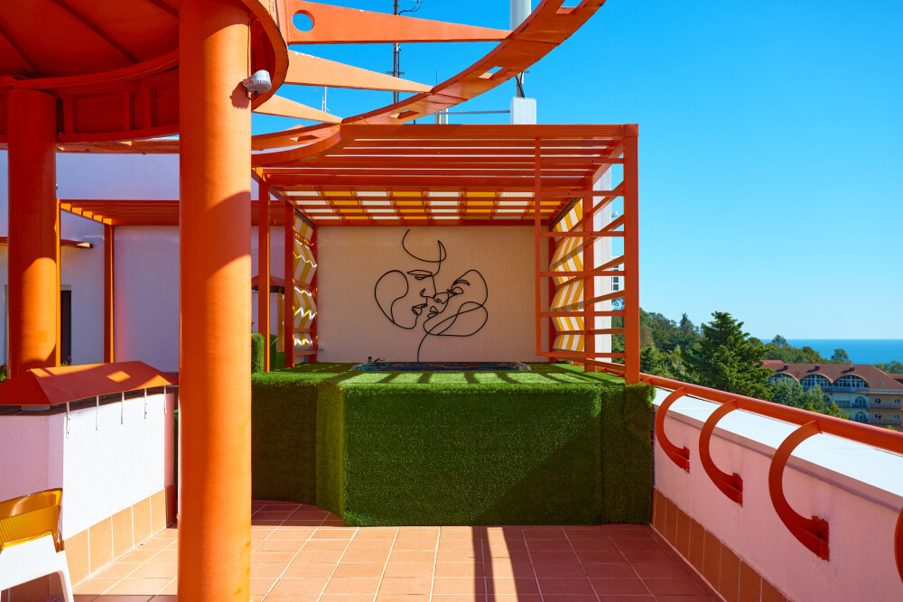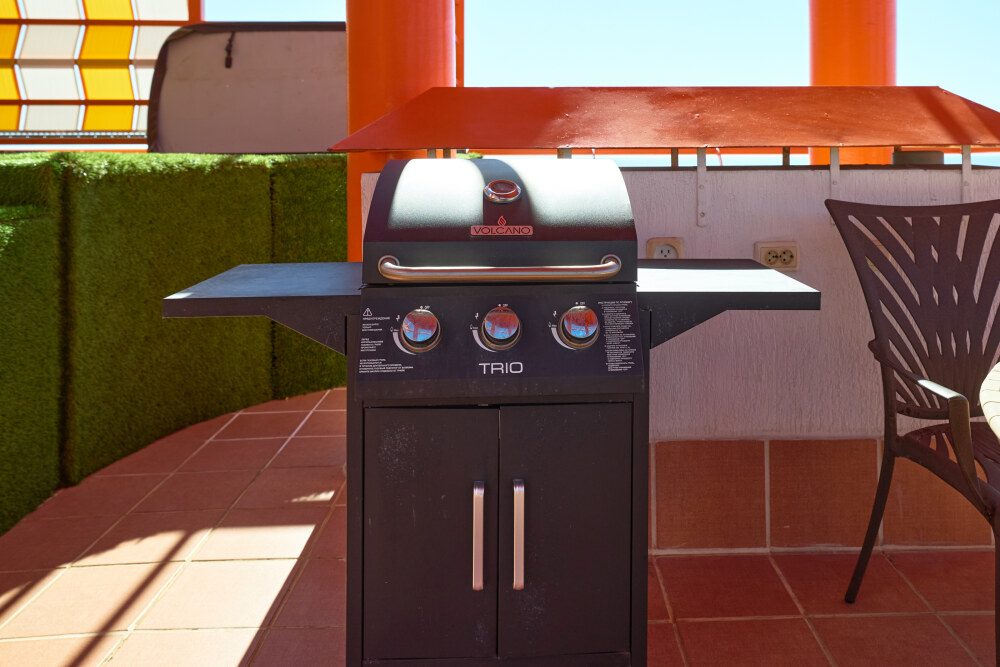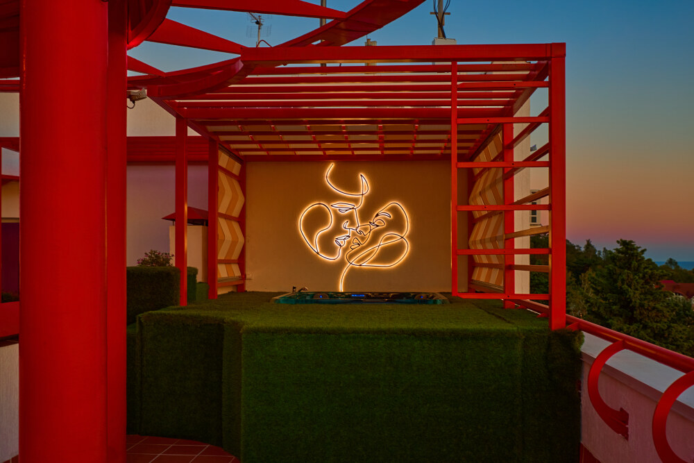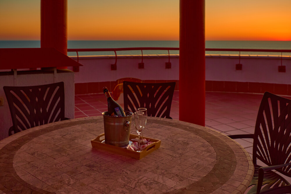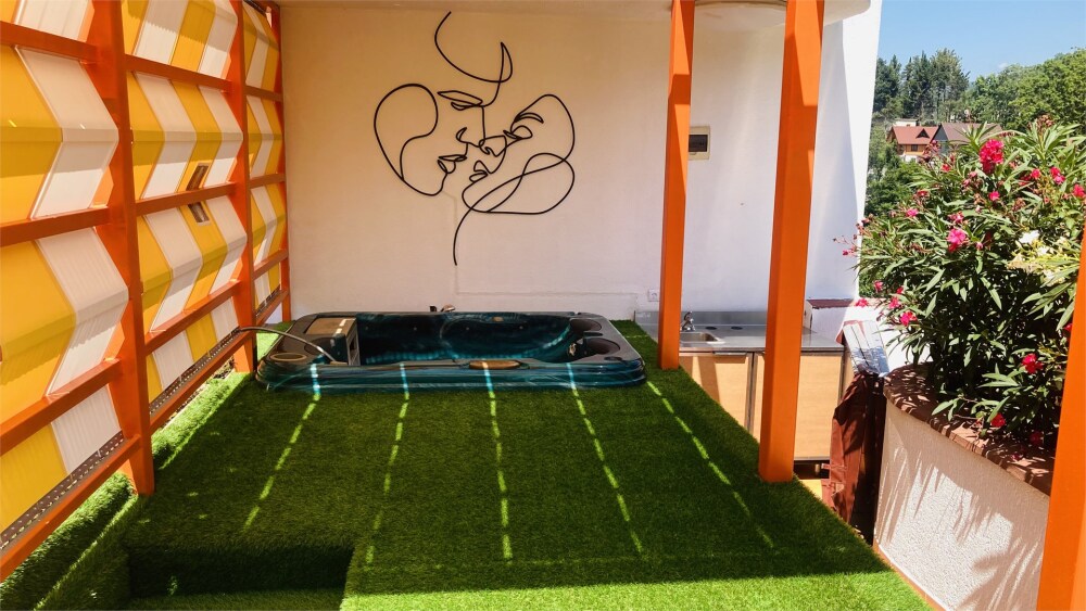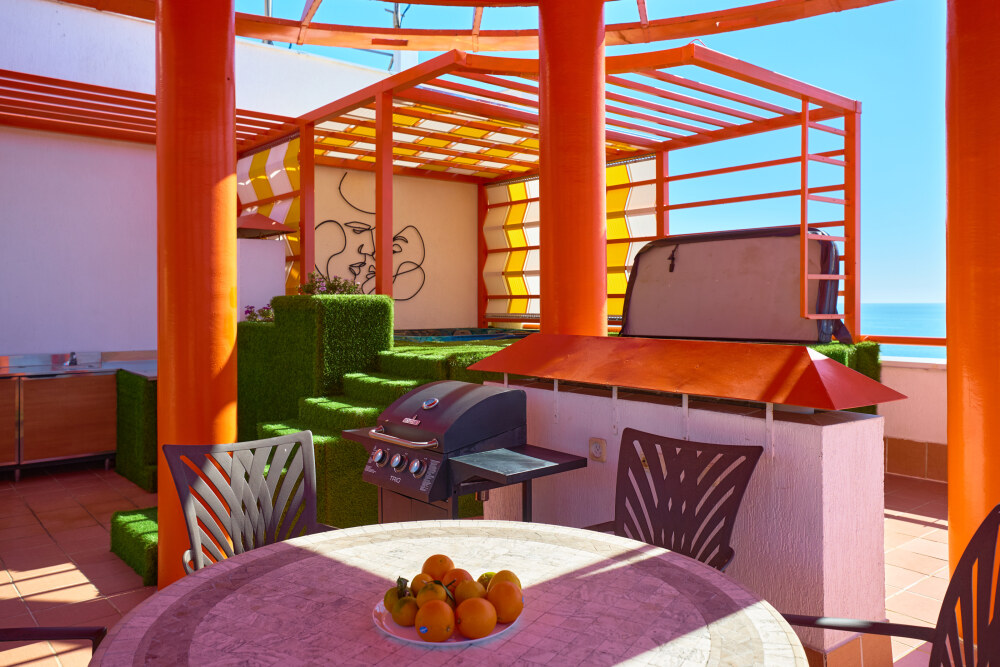 Пентхаус с террасой на крыше отеля с шезлонгами, 6-ти местной джакузи и зоной для пикника с набором мебели и газовым грилем. В обоих спальнях есть большие телевизоры с плоским экраном и доступом в интернет, кровать KingSize в одной спальне и раскладывающийся угловой диван во второй. Гостиная оборудована кухней с варочной поверхностью, вытяжкой и потолочным вентилятором, а так же сплит-системой, холодильником и телевизором. Гостям доступна премиум линейка отельной парфюмерии, банные халаты, имеются пуфы, раскладывающиеся в полноценную кровать.