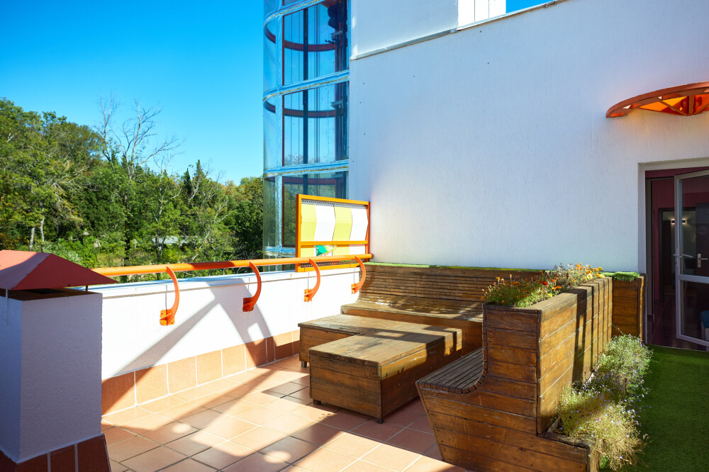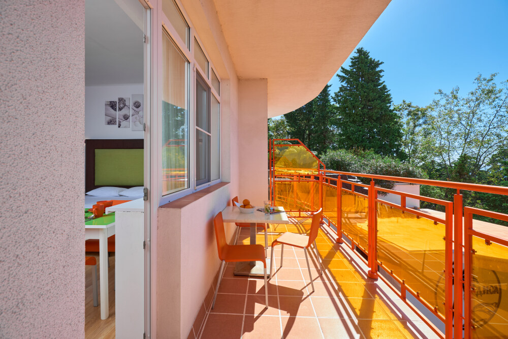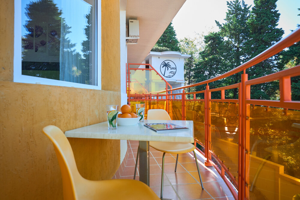 2-местный номер Делюкс с балконом подойдет для размещения 2-х гостей, предпочитающих тихий отдых и вид на цветущий сад отеля и пруд с водопадом, в котором живут черепахи и яркие карпы Кои. Для размещения 3-го гостя в номере есть пуф, трансформирующийся в полноценную дополнительную кровать. Оборудован мини-кухней со столовой посудой. В ванной комнате номера кроме душа имеется ванна с поручнями. На балконе номера есть садовая мебель.