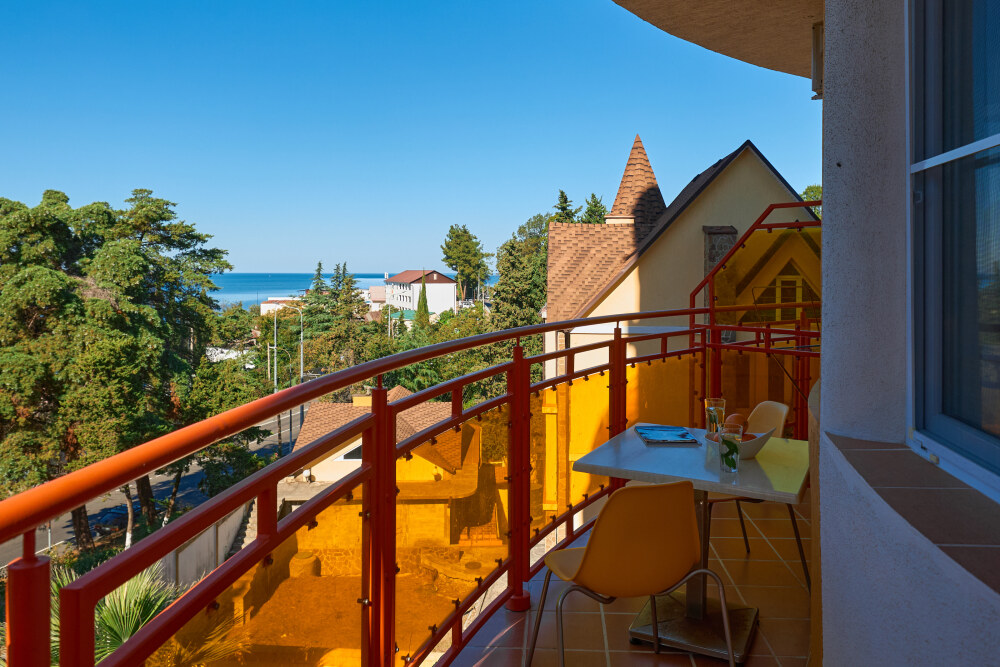 3-местный номер с балконом подойдет для комфортного размещения 3-4 человек оборудован кухонным уголком с обеденным столом, столовой посудой и эл.чайником. Для размещения 4-го гостя в номере есть пуф, трансформирующийся в полноценную дополнительную кровать, на балконе номера есть стол и стулья.