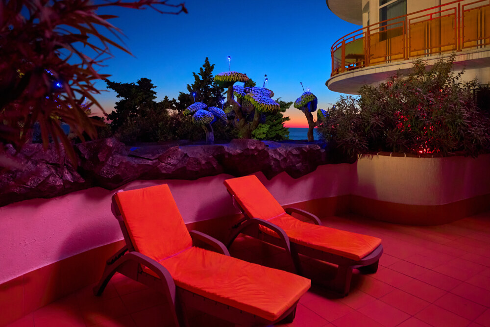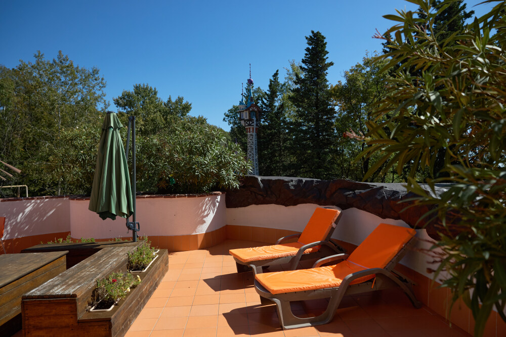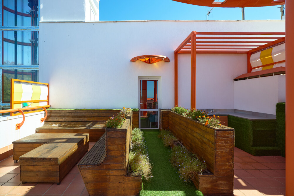 Просторный номер с гостиной зоной, оборудованной кухонной мебелью, посудой и телевизором с плоским экраном, имеет выход на террасу, расположенную на крыше отельного лобби, на которой к услугам гостей установлена 2-местная джакузи, шезлонги, зонт и садовая мебель. В спальне гости могут воспользоваться большим телевизором с плоским экраном и доступом в интернет. Гостям доступна премиум линейка отельной парфюмерии, банные халаты.
