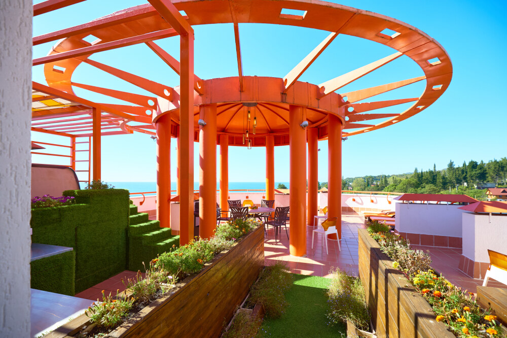 Ресторан отеля предоставляет гостям завтрак, обед и ужин по системе «Шведский стол» включенных в стоимость, а также работает по заказному меню. Во всех номерах доступны услуги Room-service. Имеется бар над бассейном, хамам и сауна с прямым доступом в бассейн и массажным креслом Yamaguchi. Так же на территории отеля есть парковка, бесплатная для гостей.