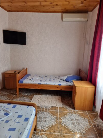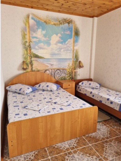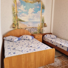 В номере: двуспальная кровать и две односпальные или одна односпальная и одно кресло-кровать.
