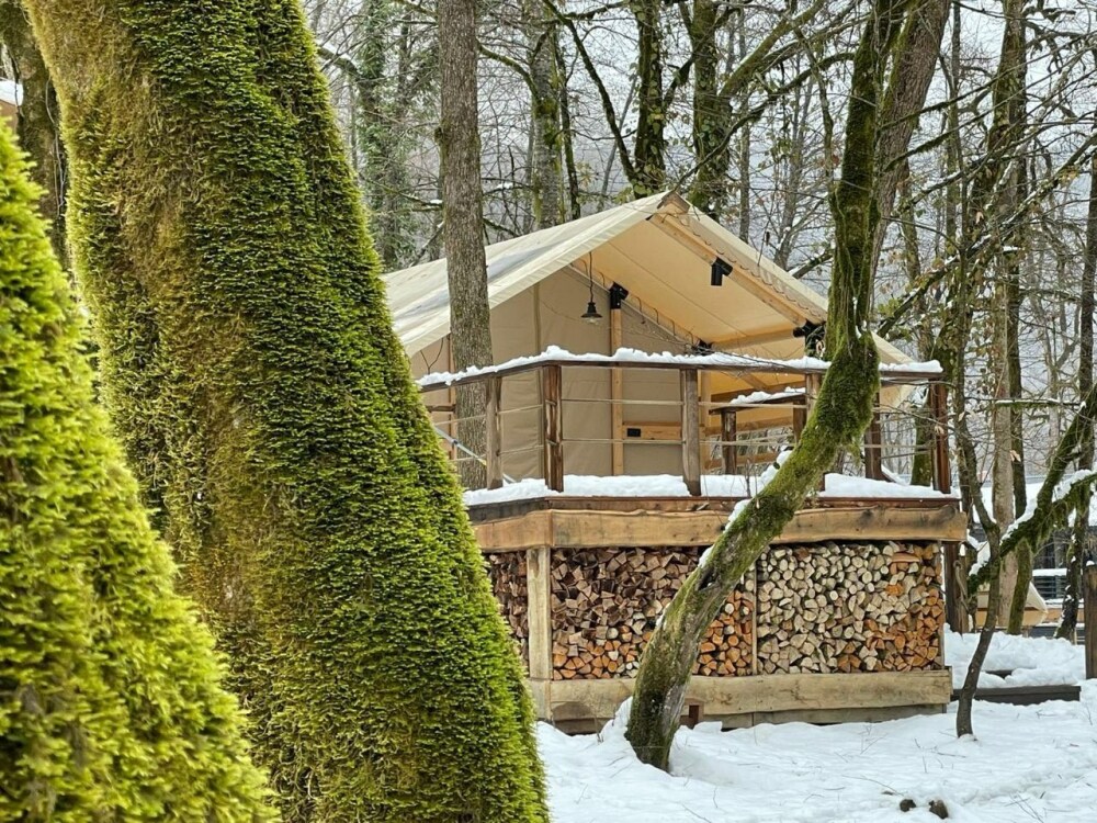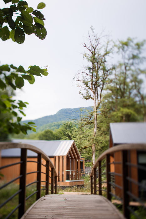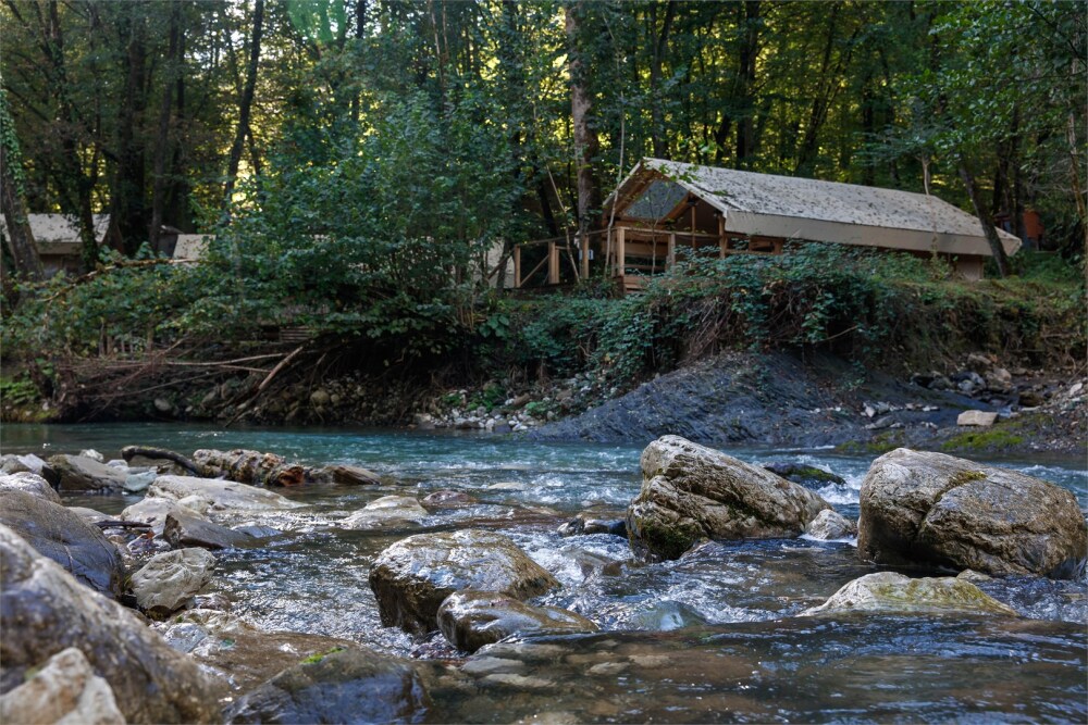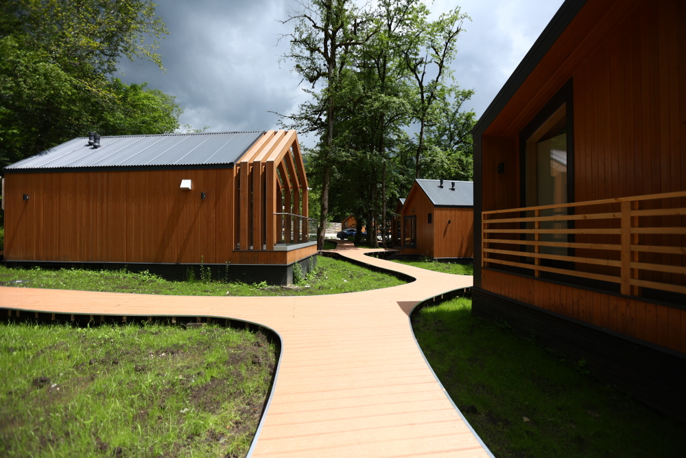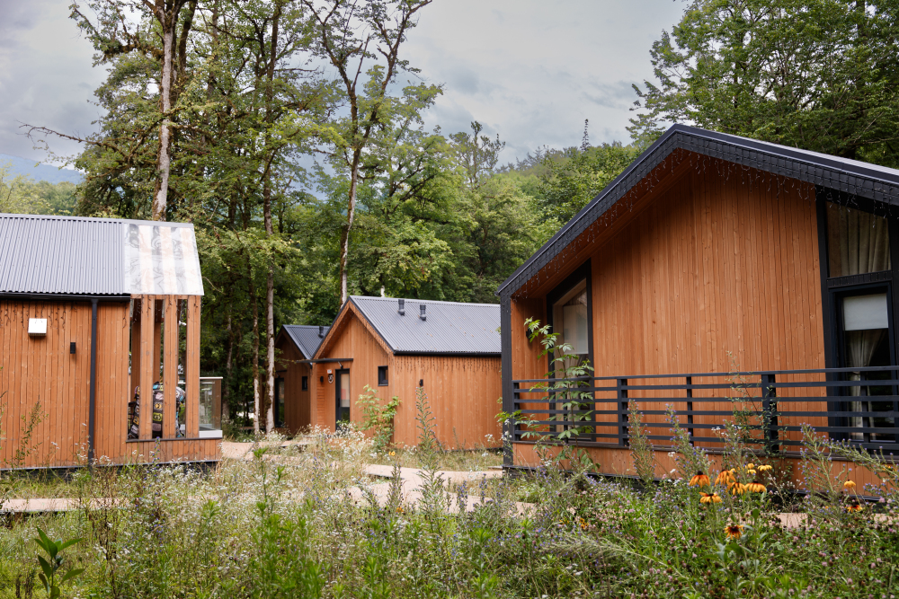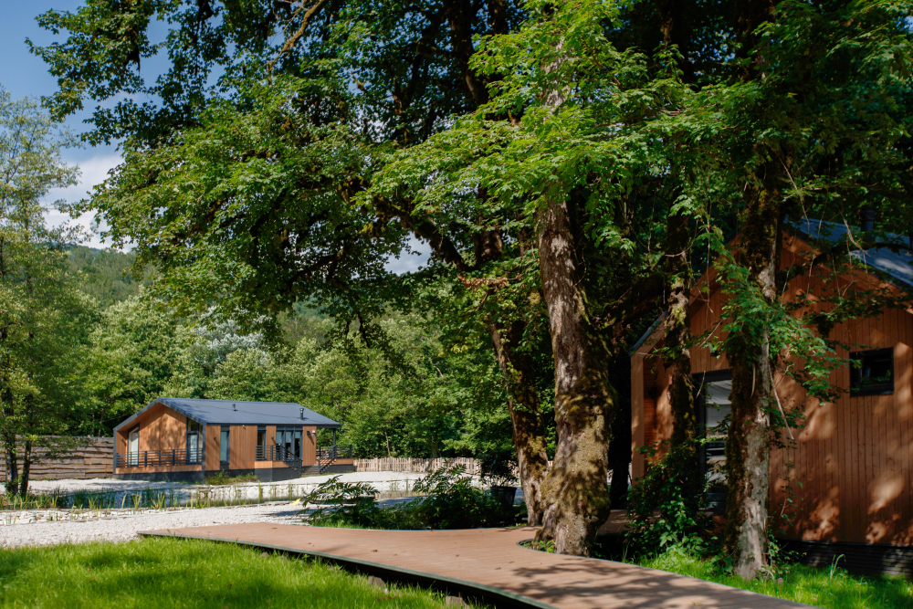 Глэмпинг «Енот» в Воронцовском парке — уникальное место для ценителей уединенного отдыха, безупречного сервиса и комфорта. На побережье горной реки Большая Хоста, в реликтовом лесу, расположились 9 комфортабельных барнхаусов и 3 просторных тент-хауса, в каждом из которых мебель из натуральных эко-материалов. теплые полы, кондиционер, камин, вcе блага цивилизации и многое другое.