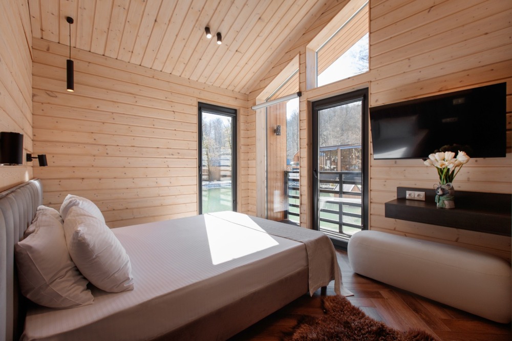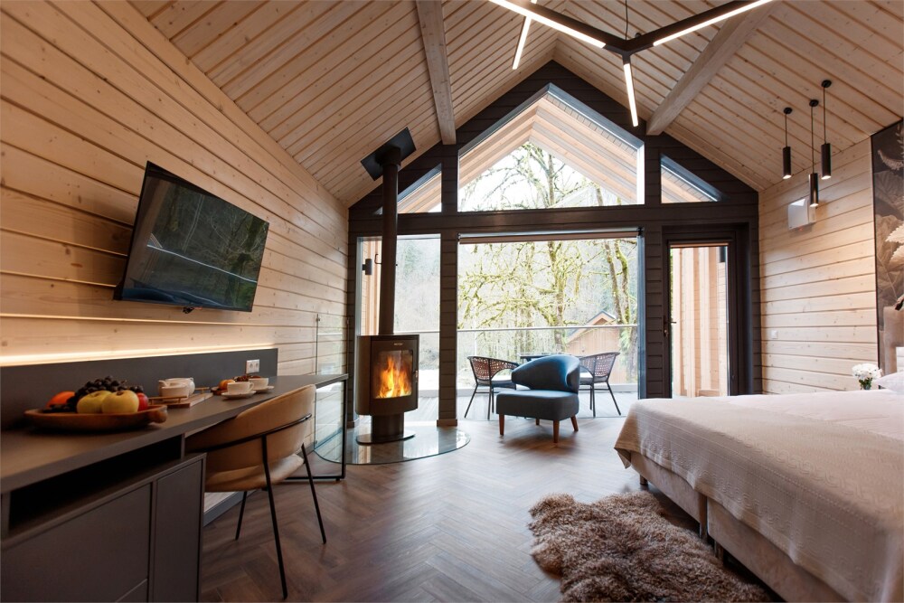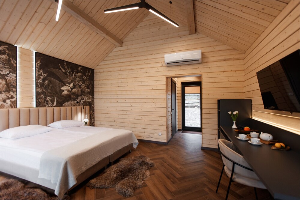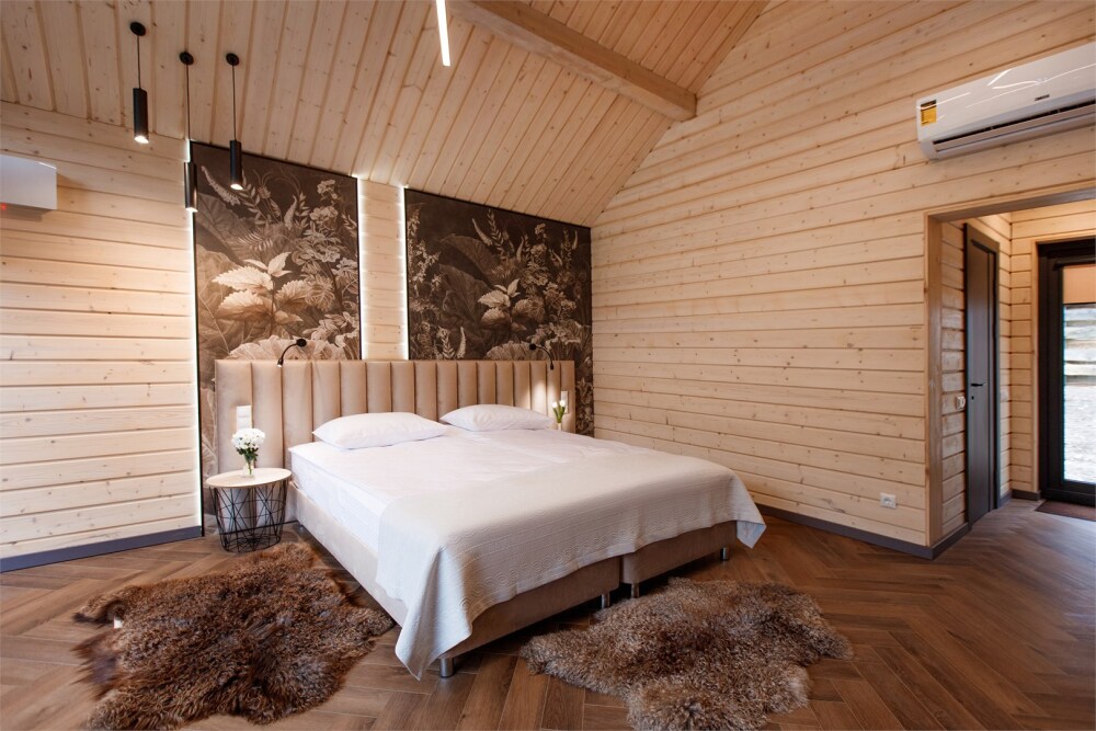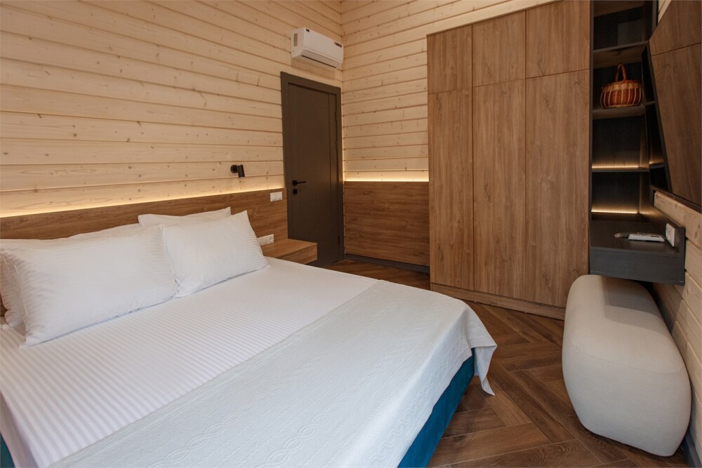 Барнхаус выполнен в европейском стиле. В каждом дизайнерская мебель из экологичных материалов, спальня-гостиная с кровать King size. Идеальный выбор для романтического уикенда и новых эмоций.